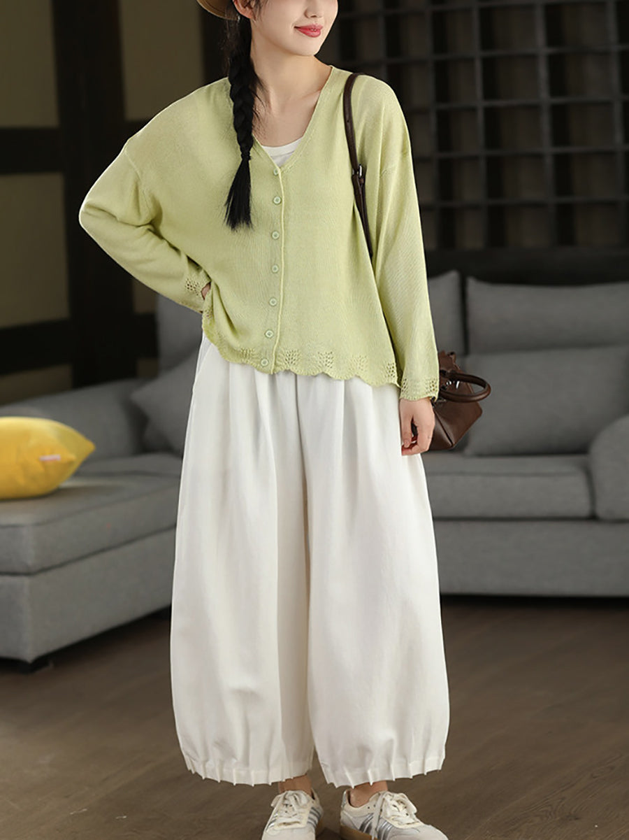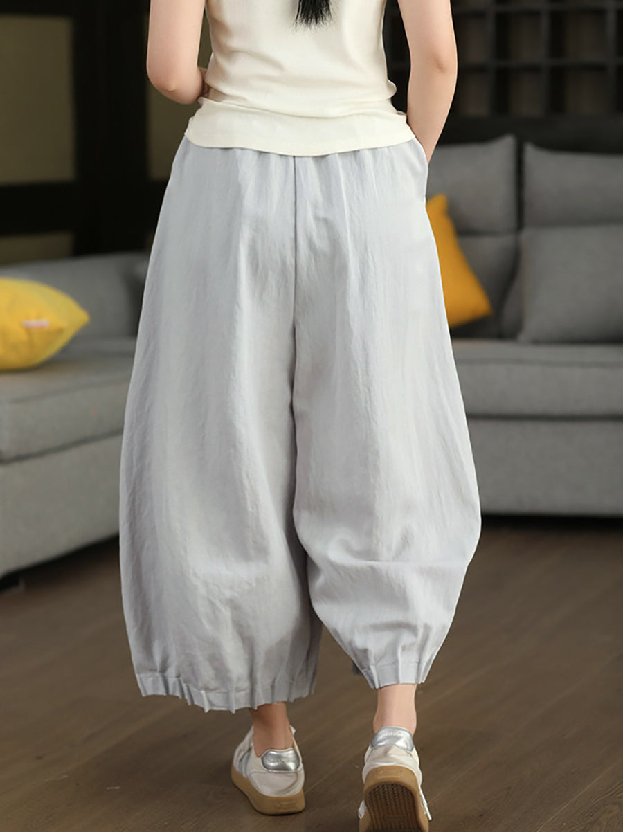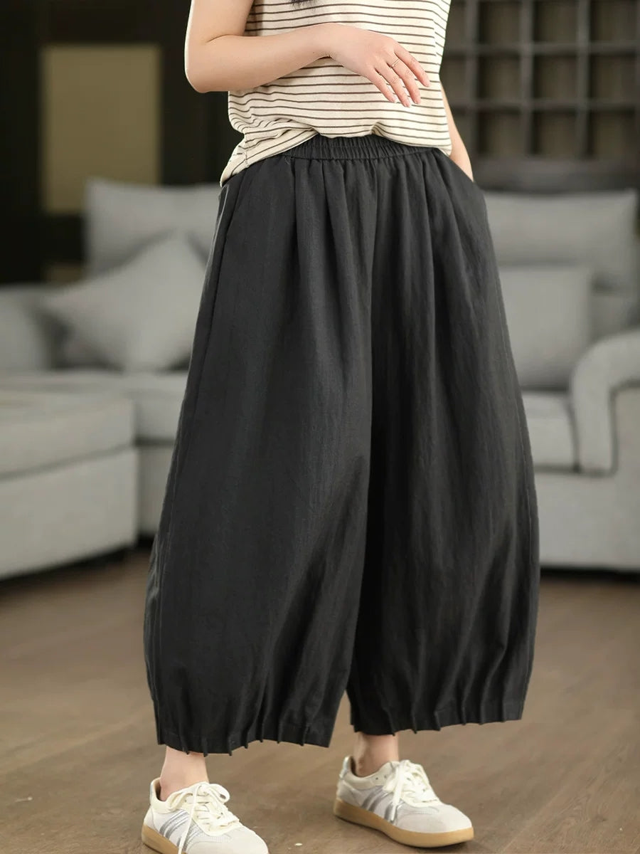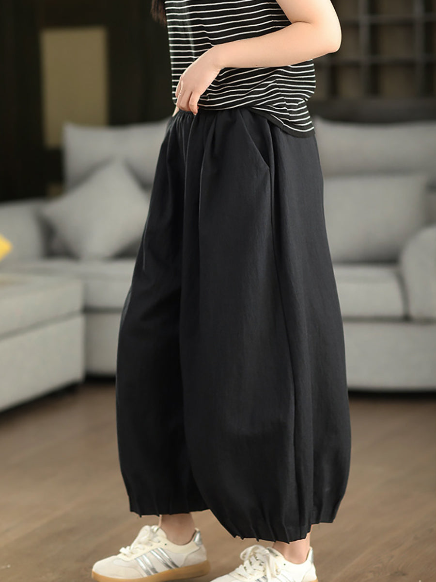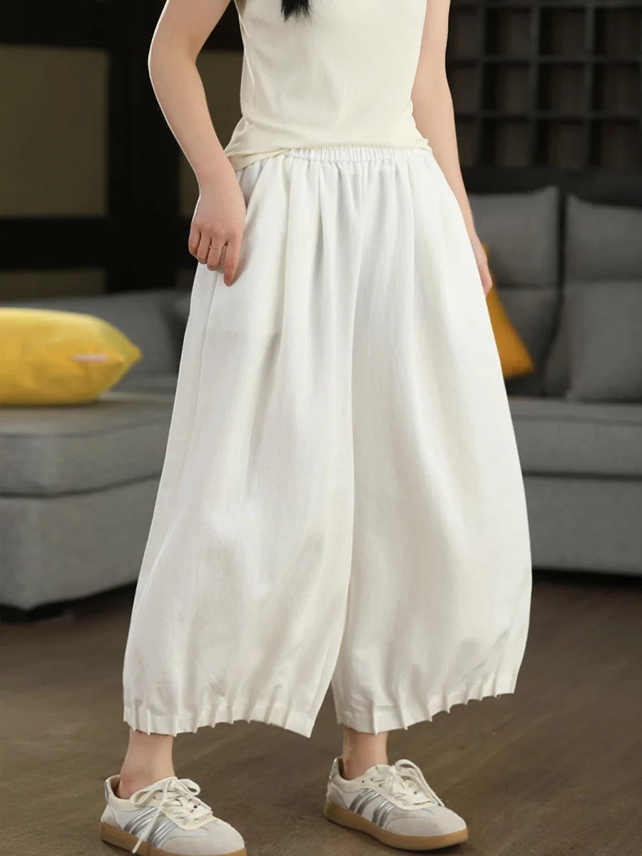 Pantalones de mujer casuales de verano de color liso y pierna ancha