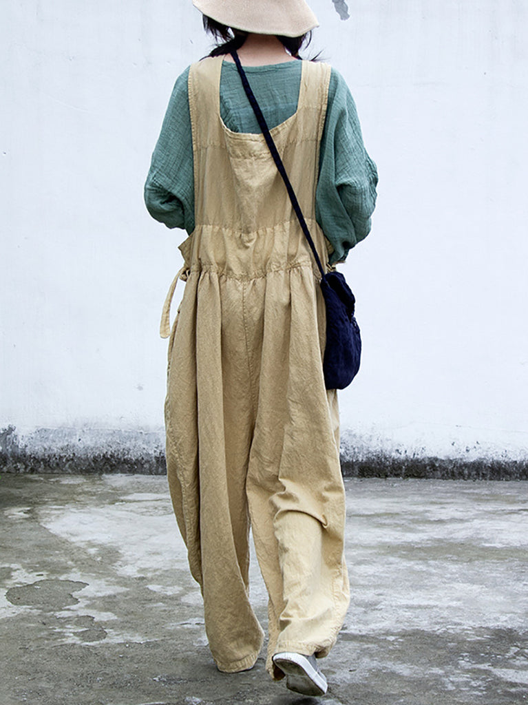 Monos de algodón con bolsillos y cordón ajustable de color liso e informal de verano para mujer