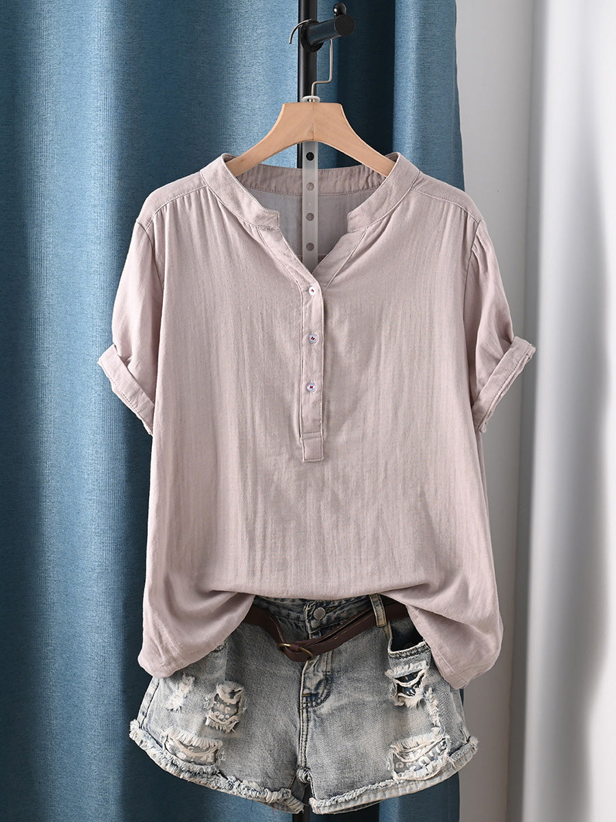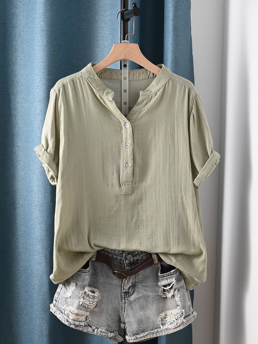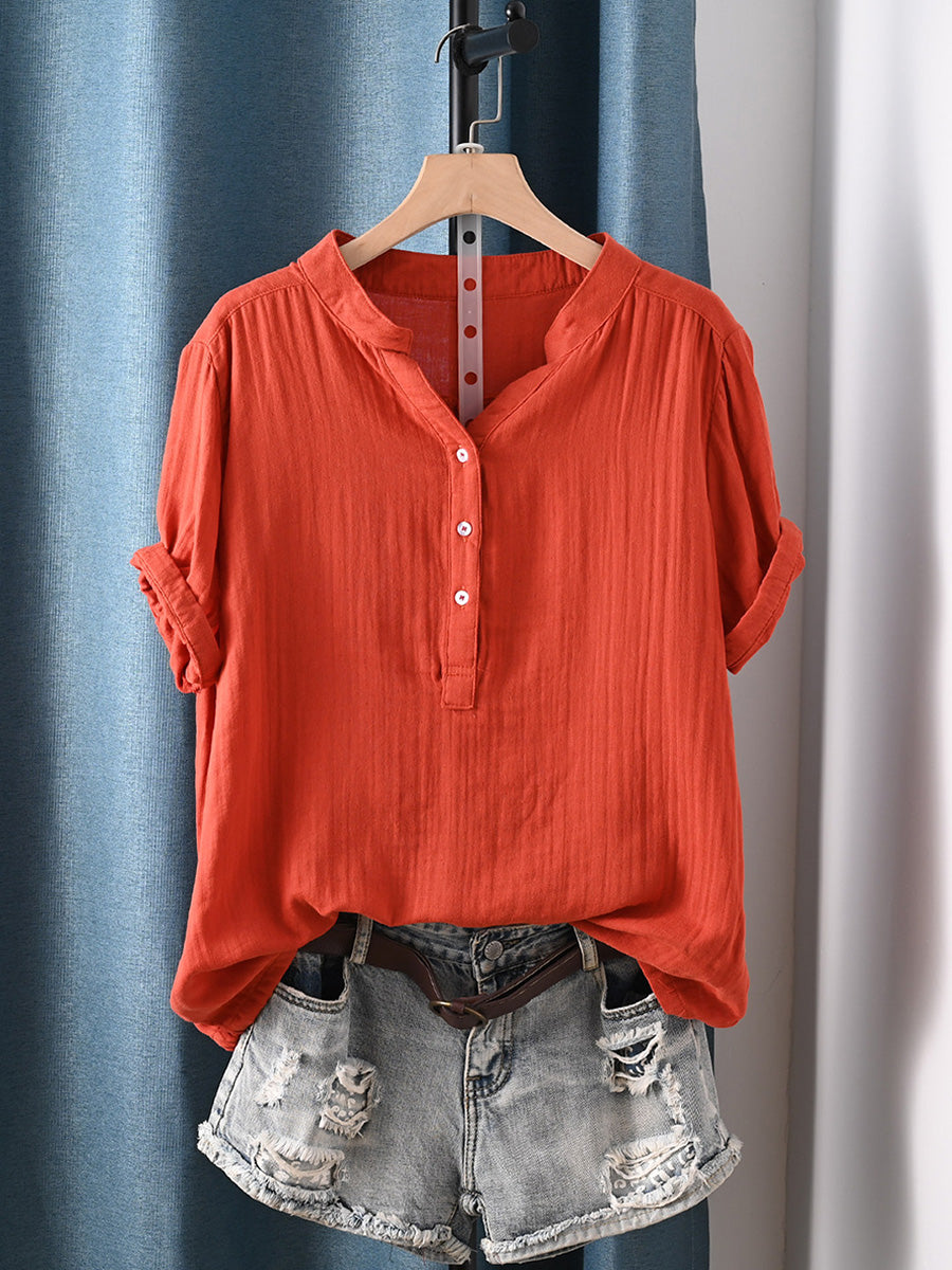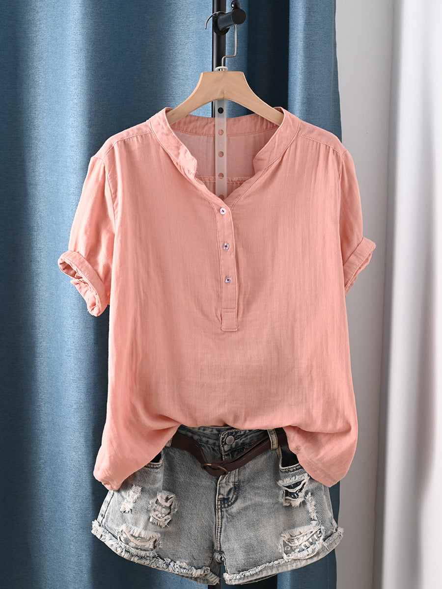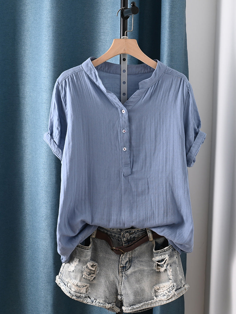Camisa de mujer informal de verano con rayas, 100% algodón y cuello redondo.