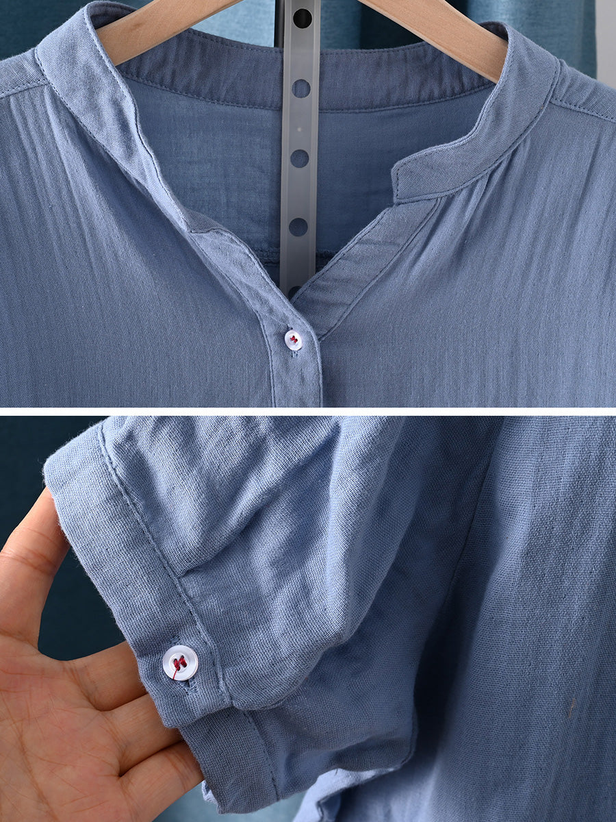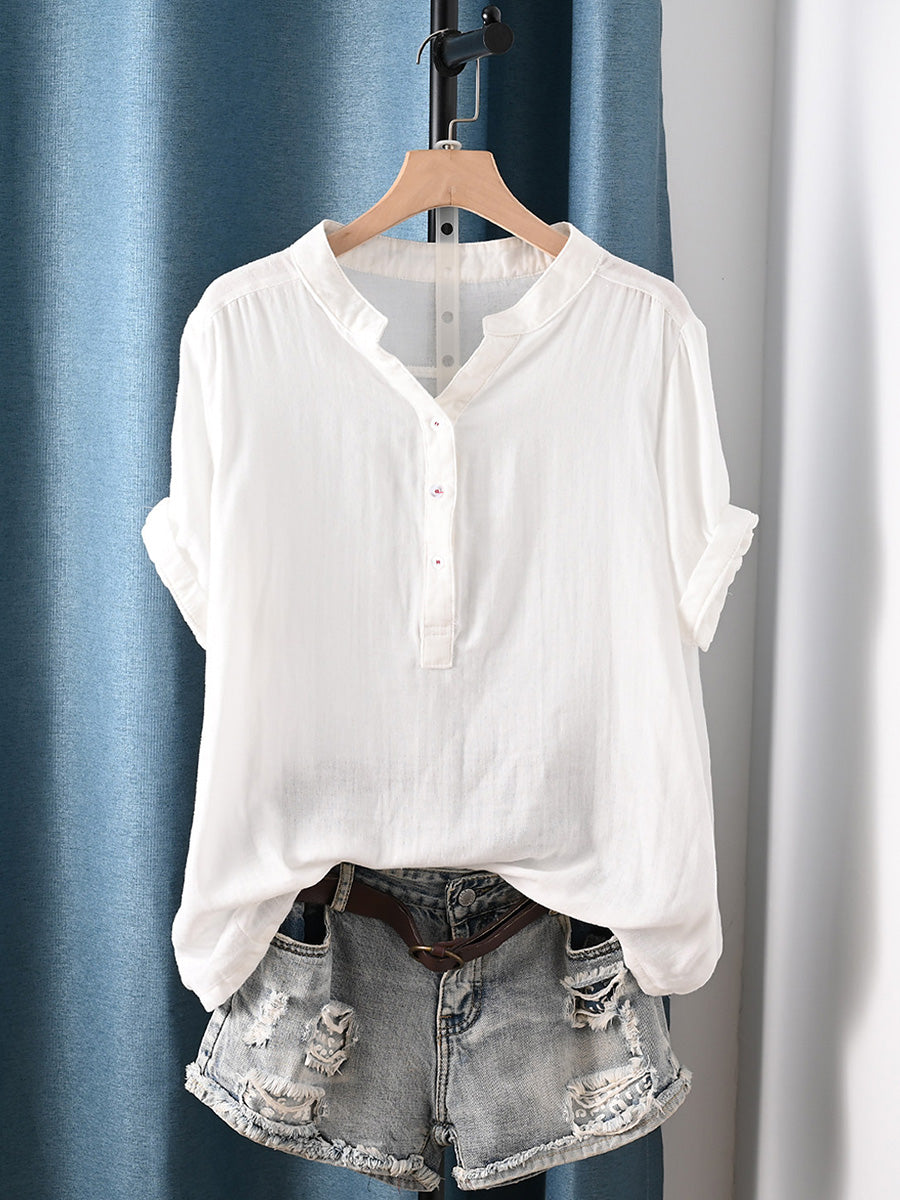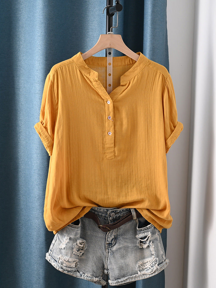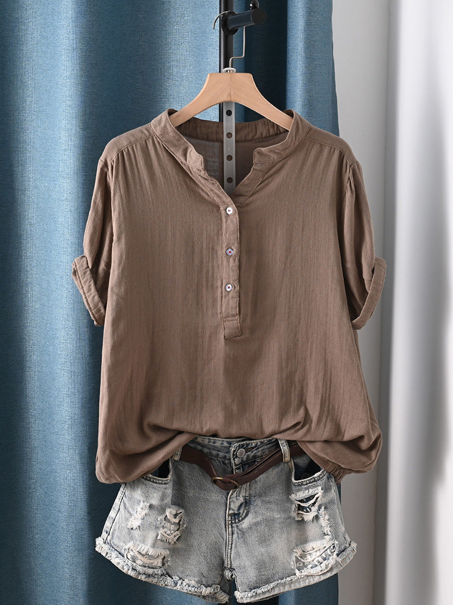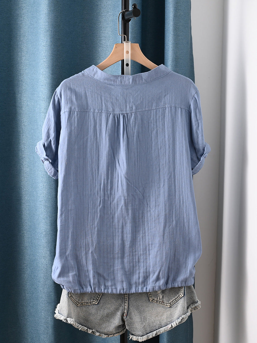 Camisa de mujer informal de verano con rayas, 100% algodón y cuello redondo.