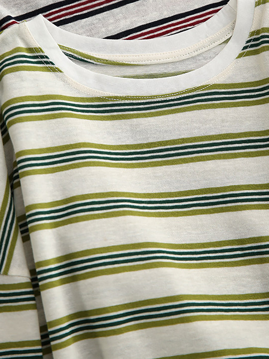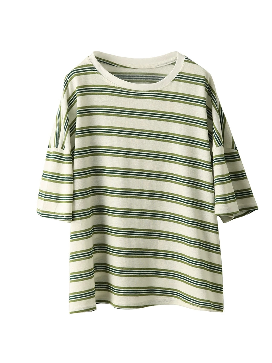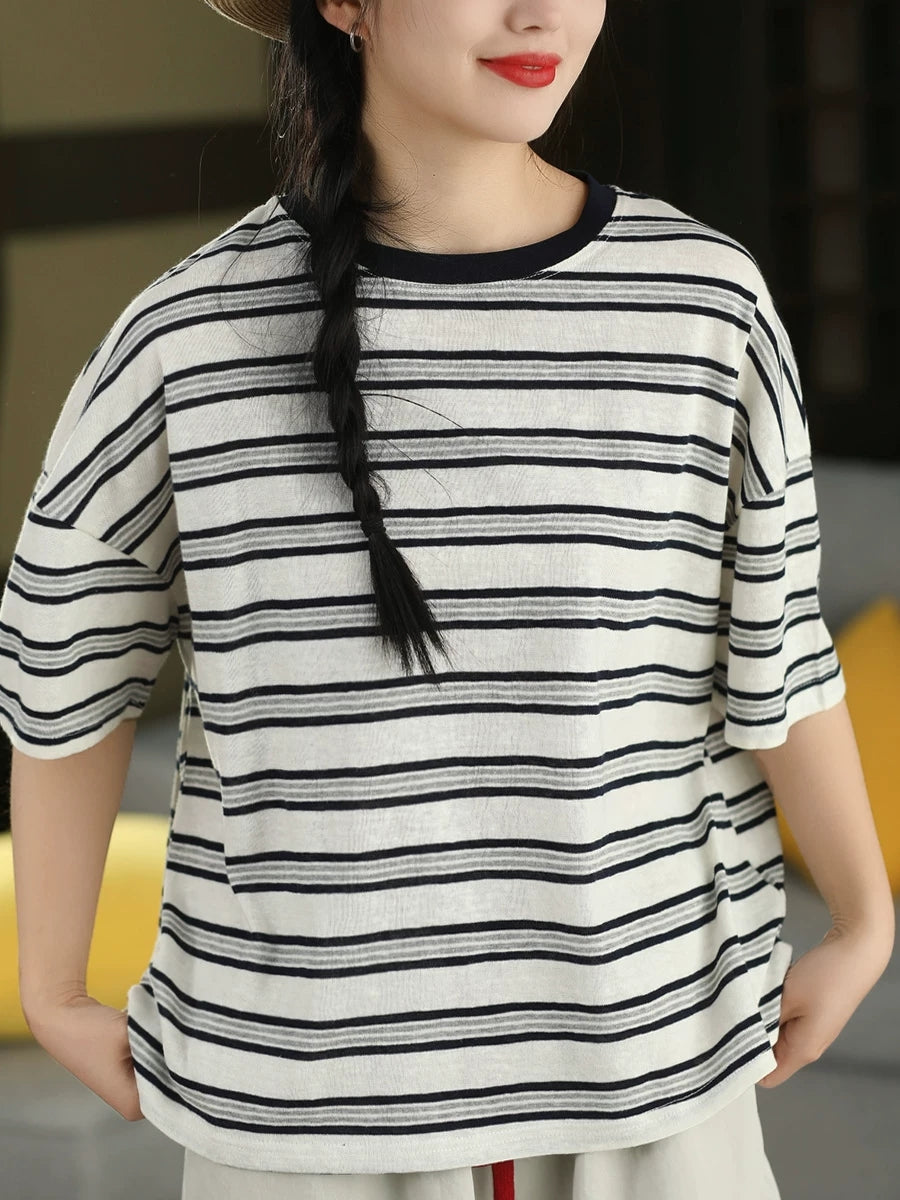 Camiseta de mujer informal de verano con cuello redondo y rayas