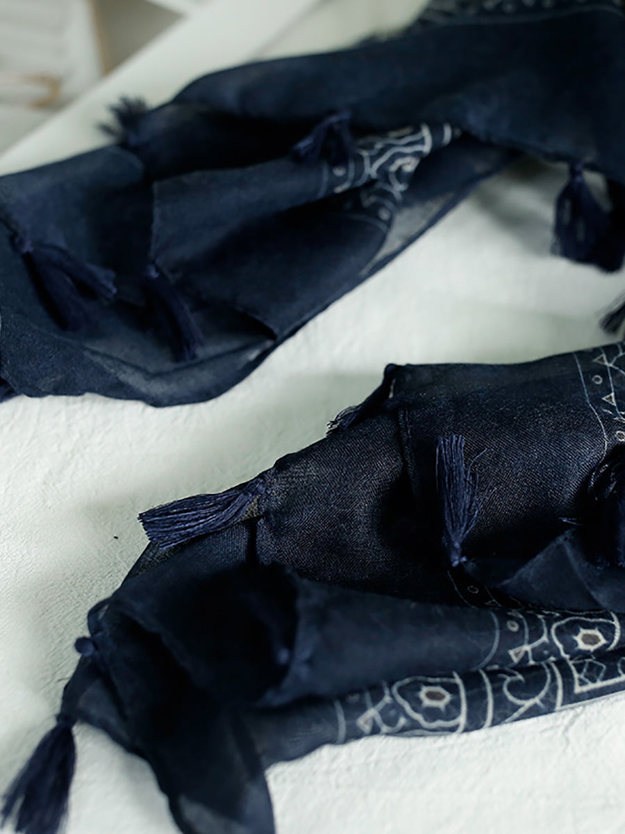 Bufanda tipo chal con borlas y estampado étnico de verano para mujer
