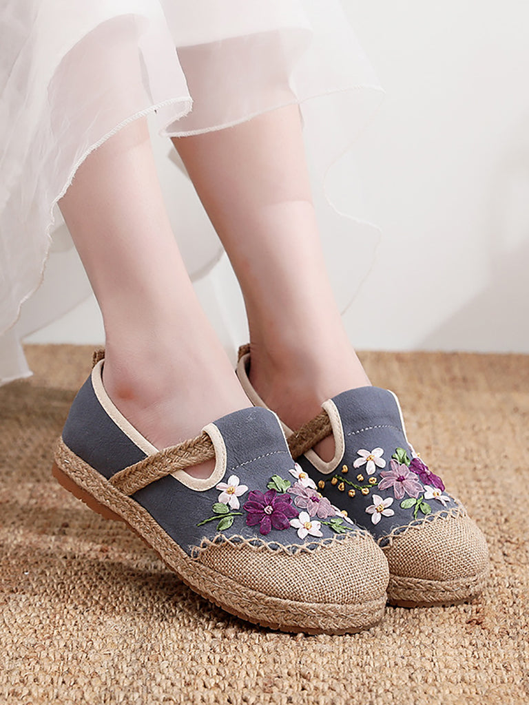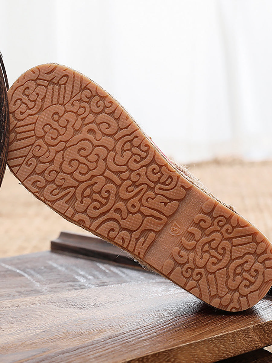 Zapatos planos de tela con flores y cinta étnica de verano para mujer