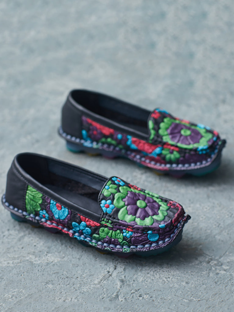 Zapatos planos suaves de cuero con flores de verano para mujer