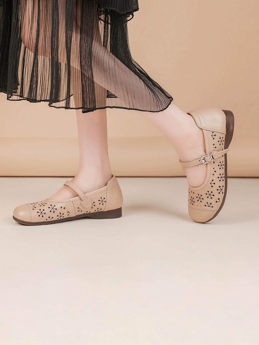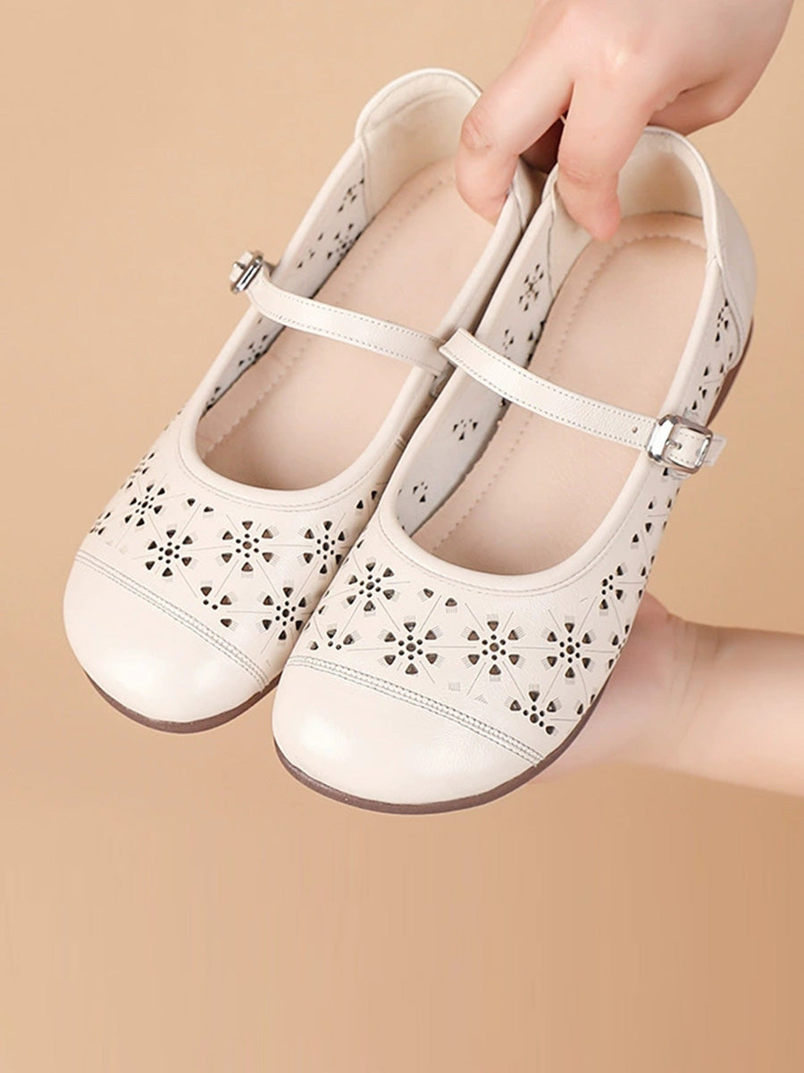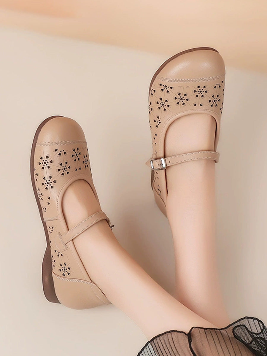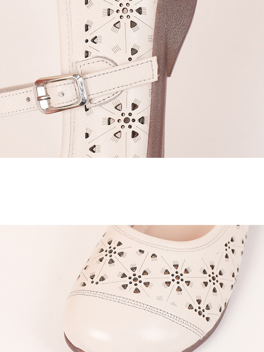 Sandalias de verano para mujer de piel auténtica con diseño calado.