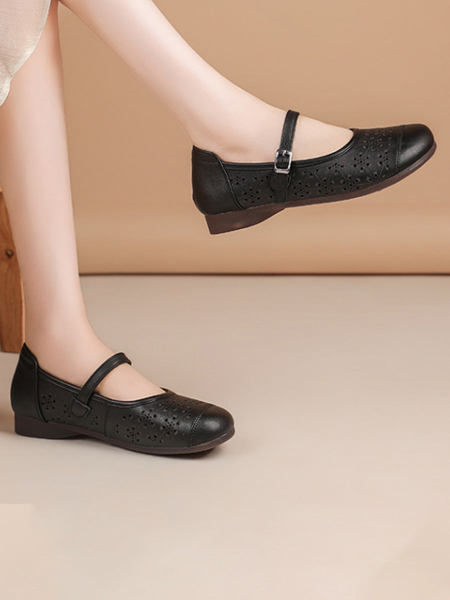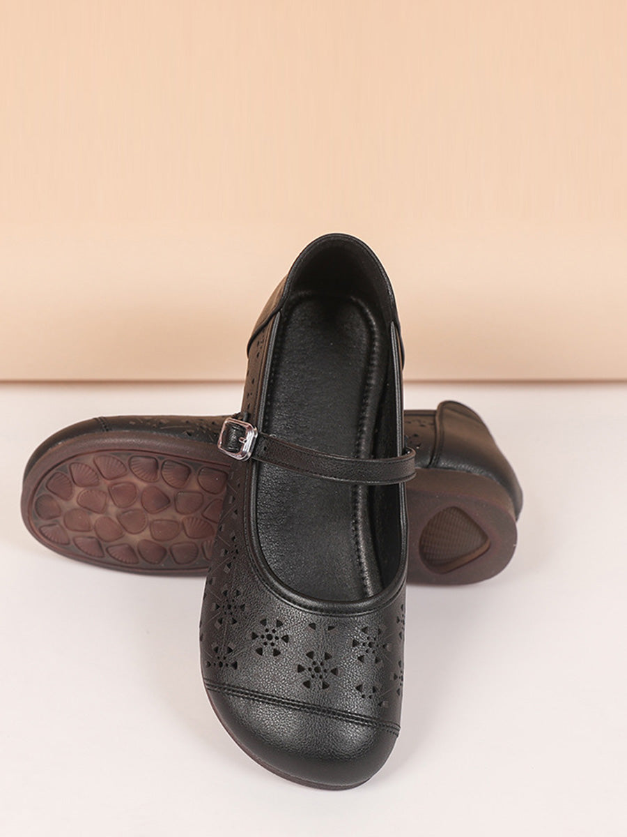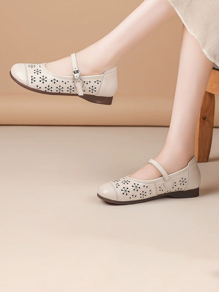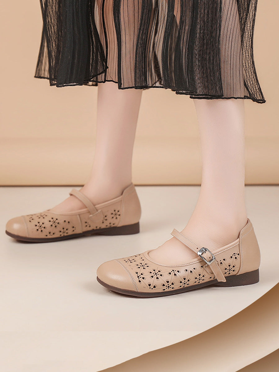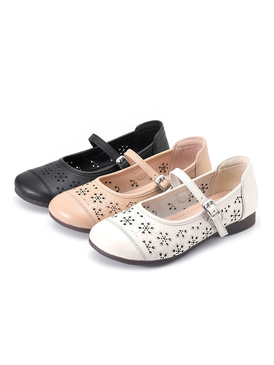 Sandalias de verano para mujer de piel auténtica con diseño calado.