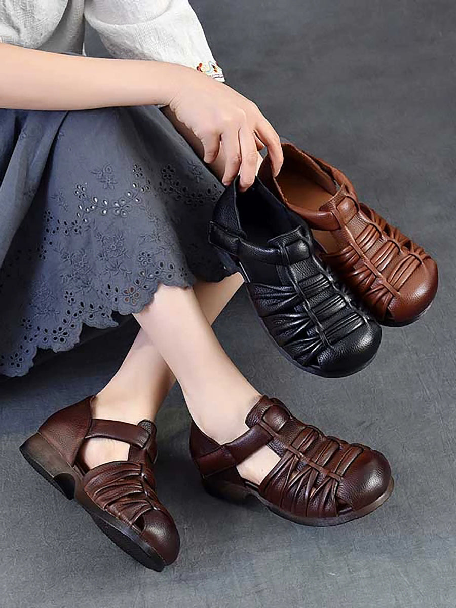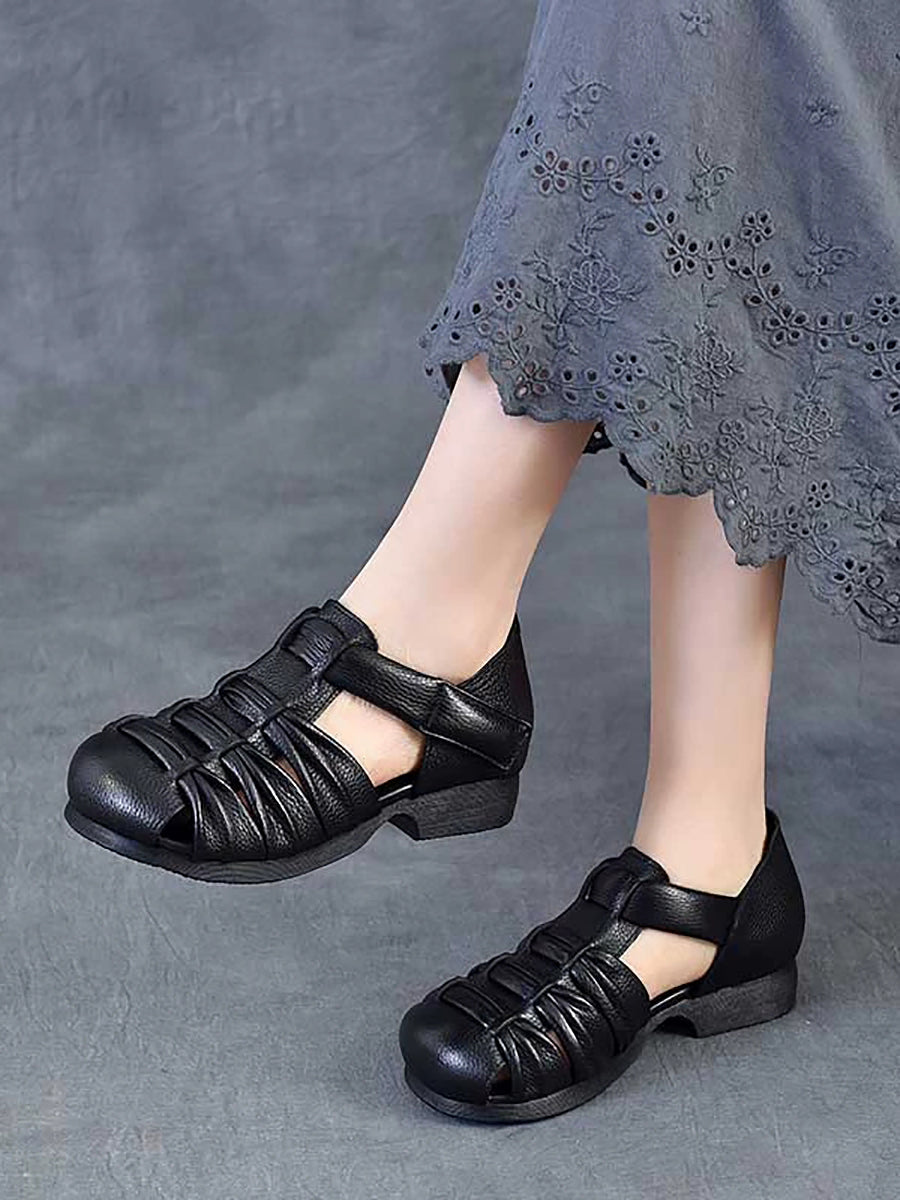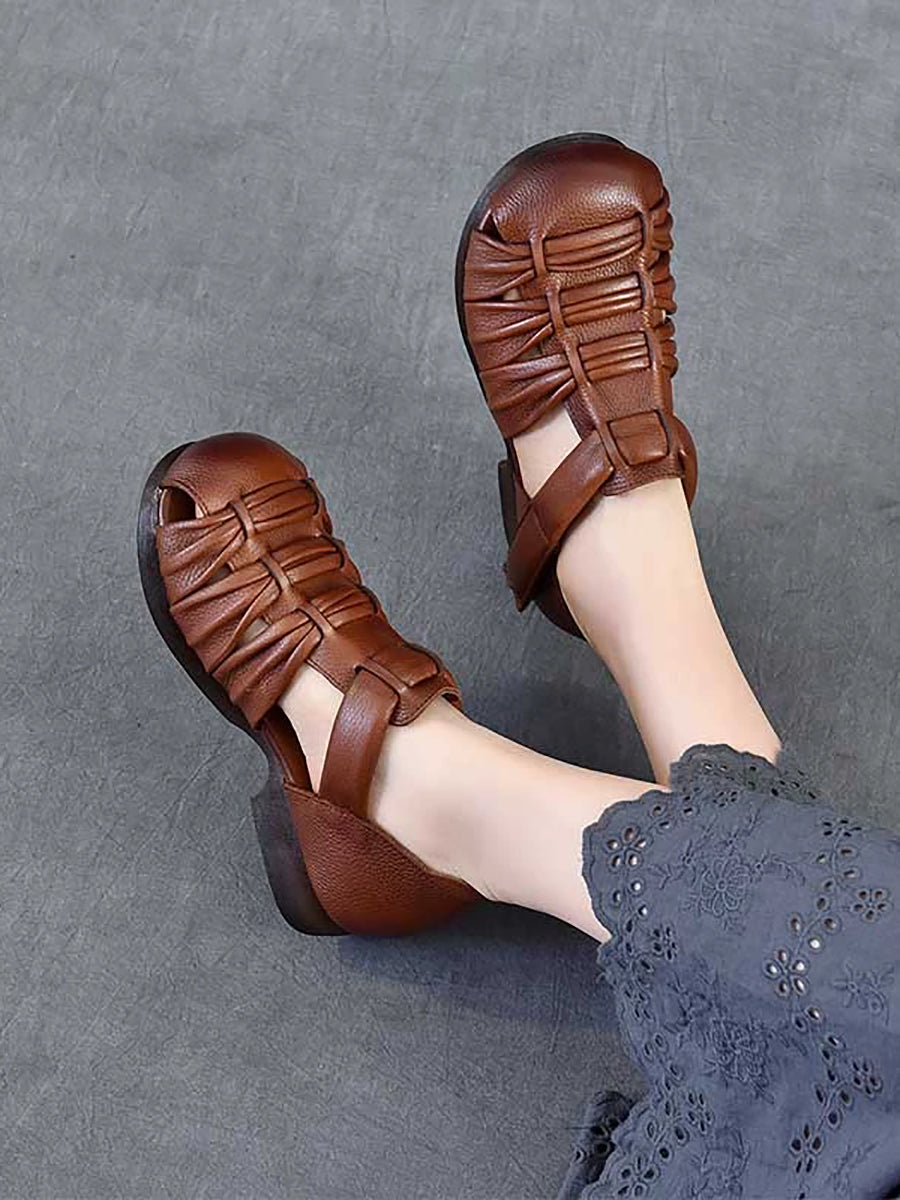 Sandalias de verano para mujer de piel auténtica con tacón bajo.