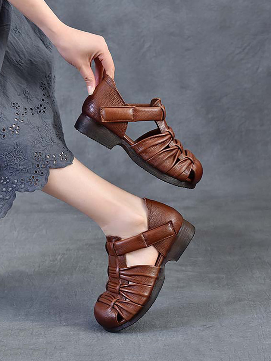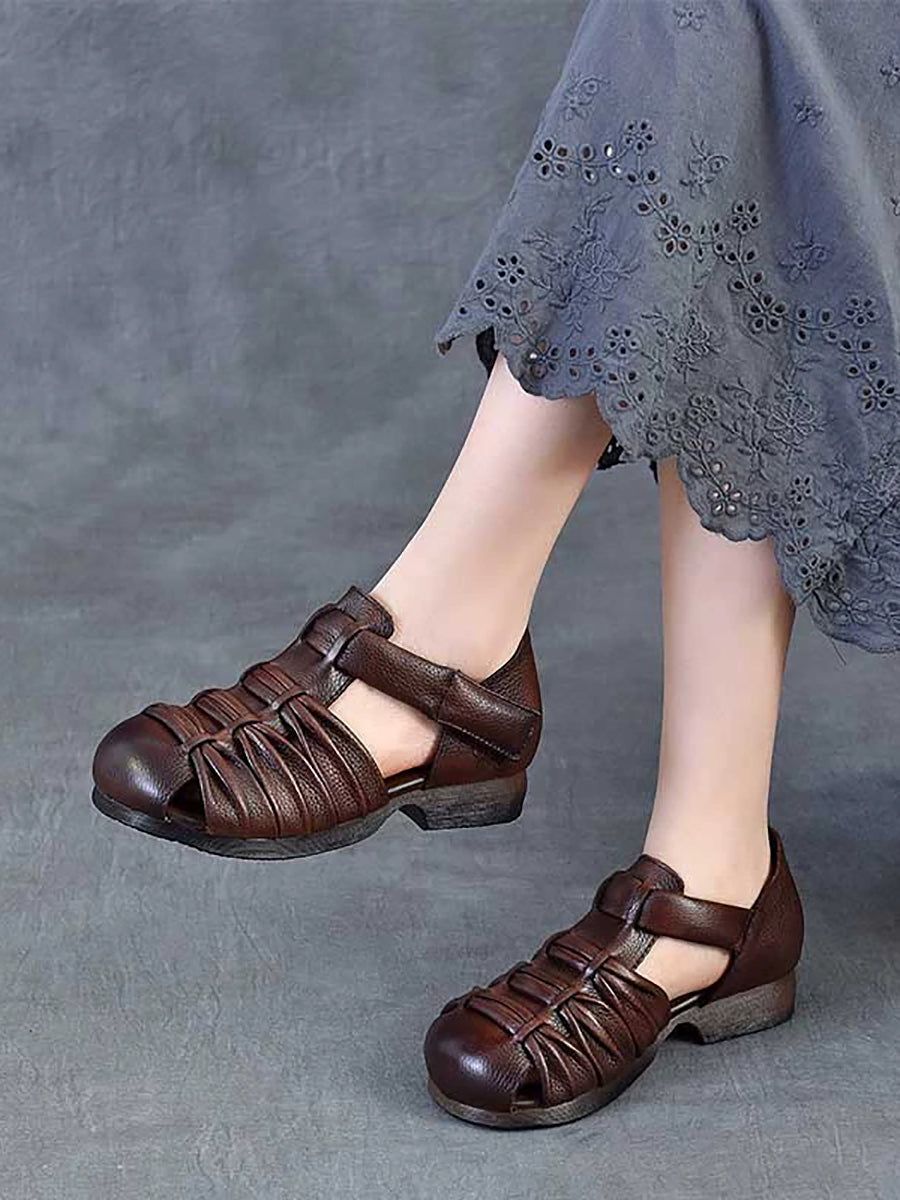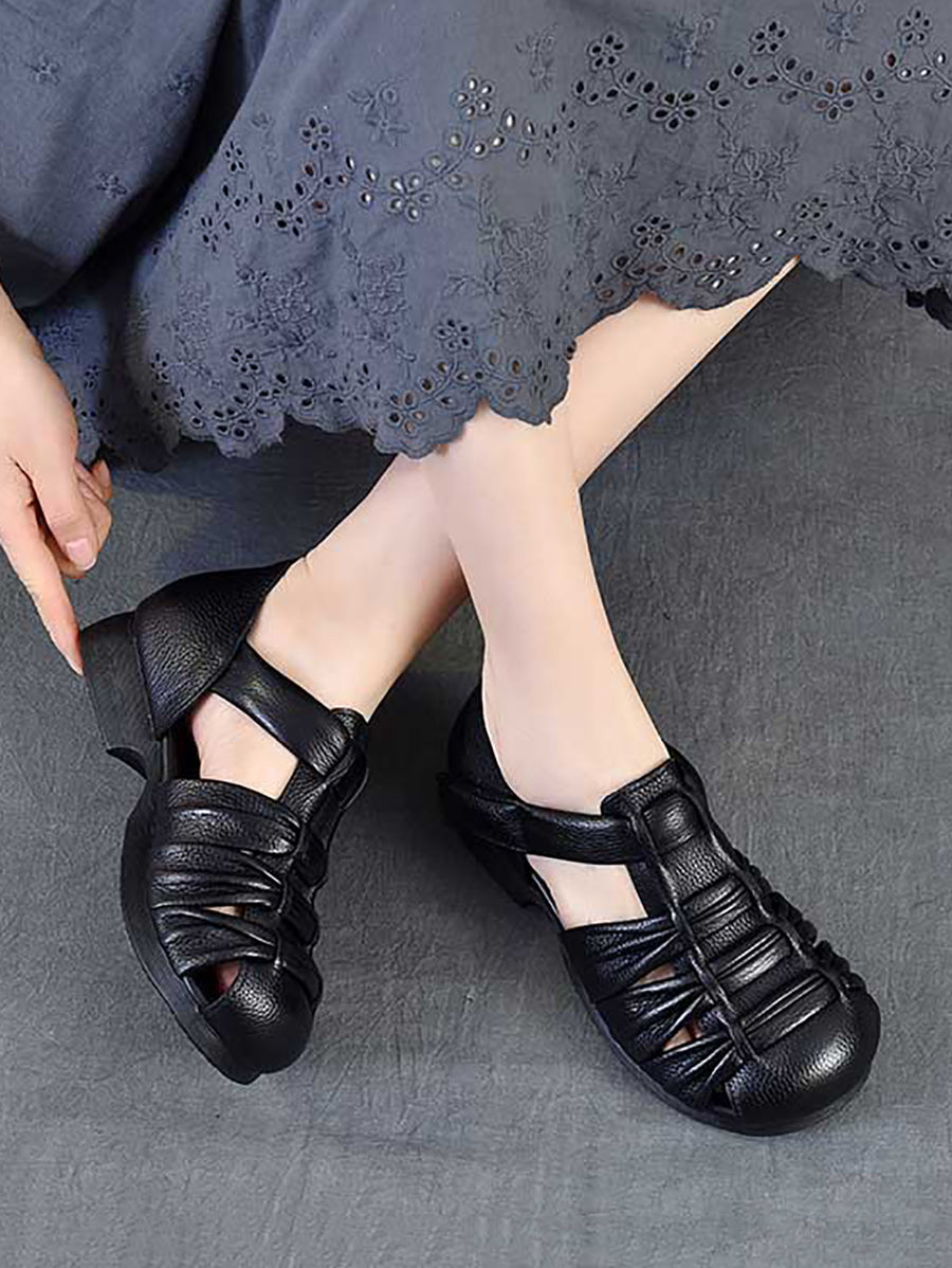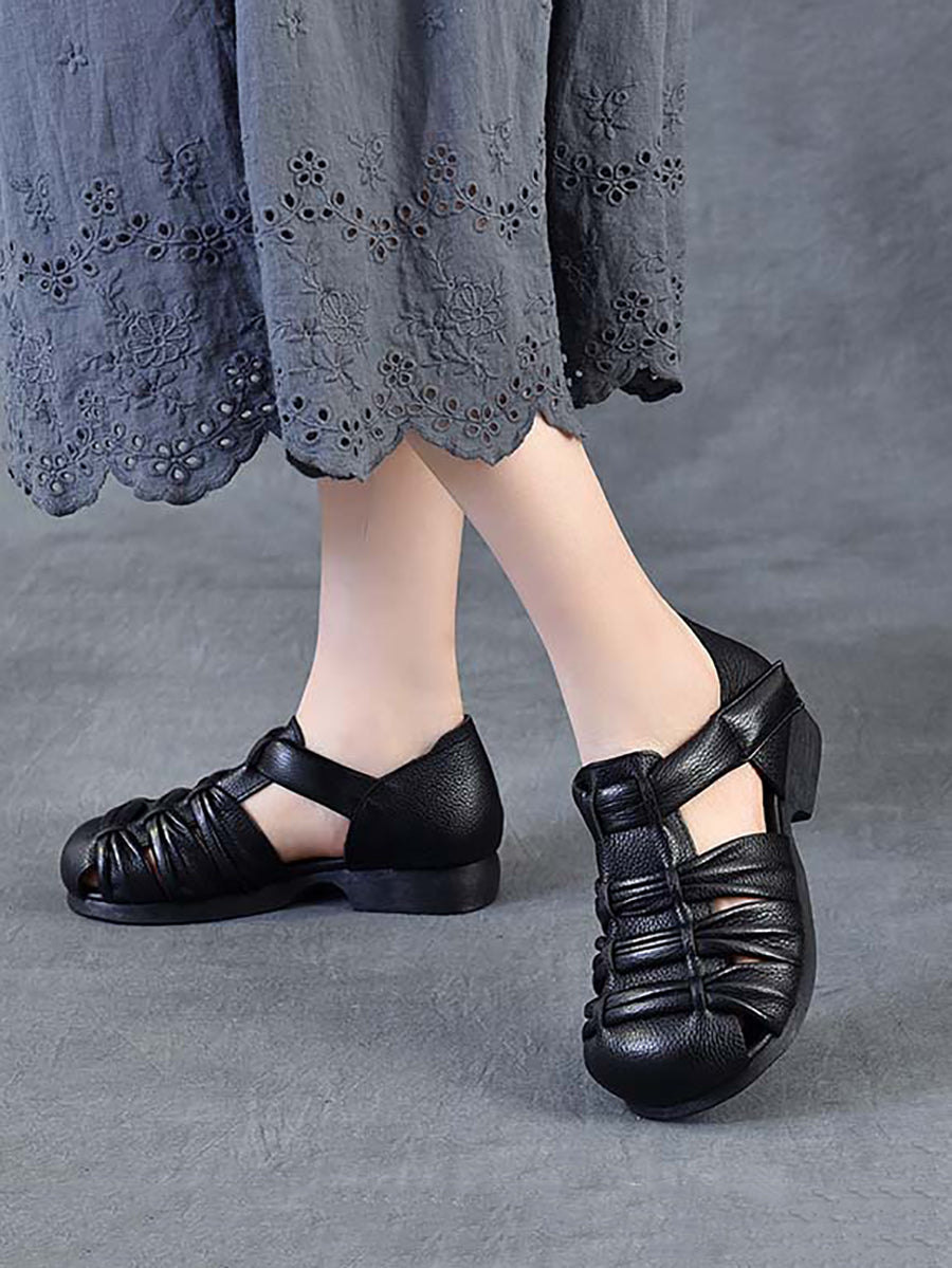 Sandalias de verano para mujer de piel auténtica con tacón bajo.