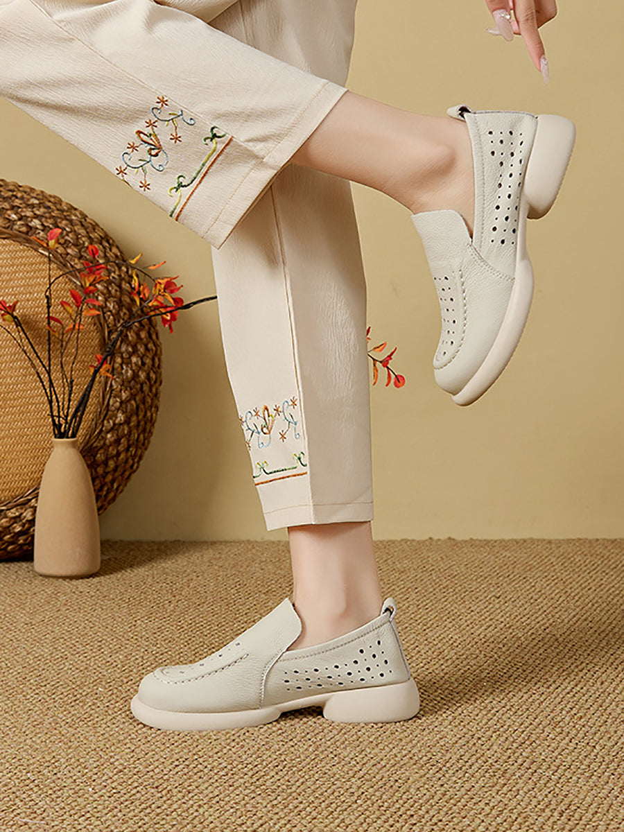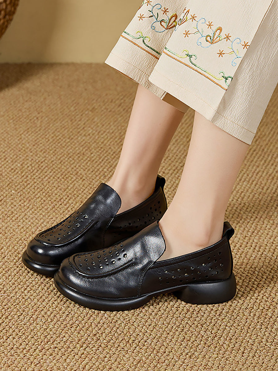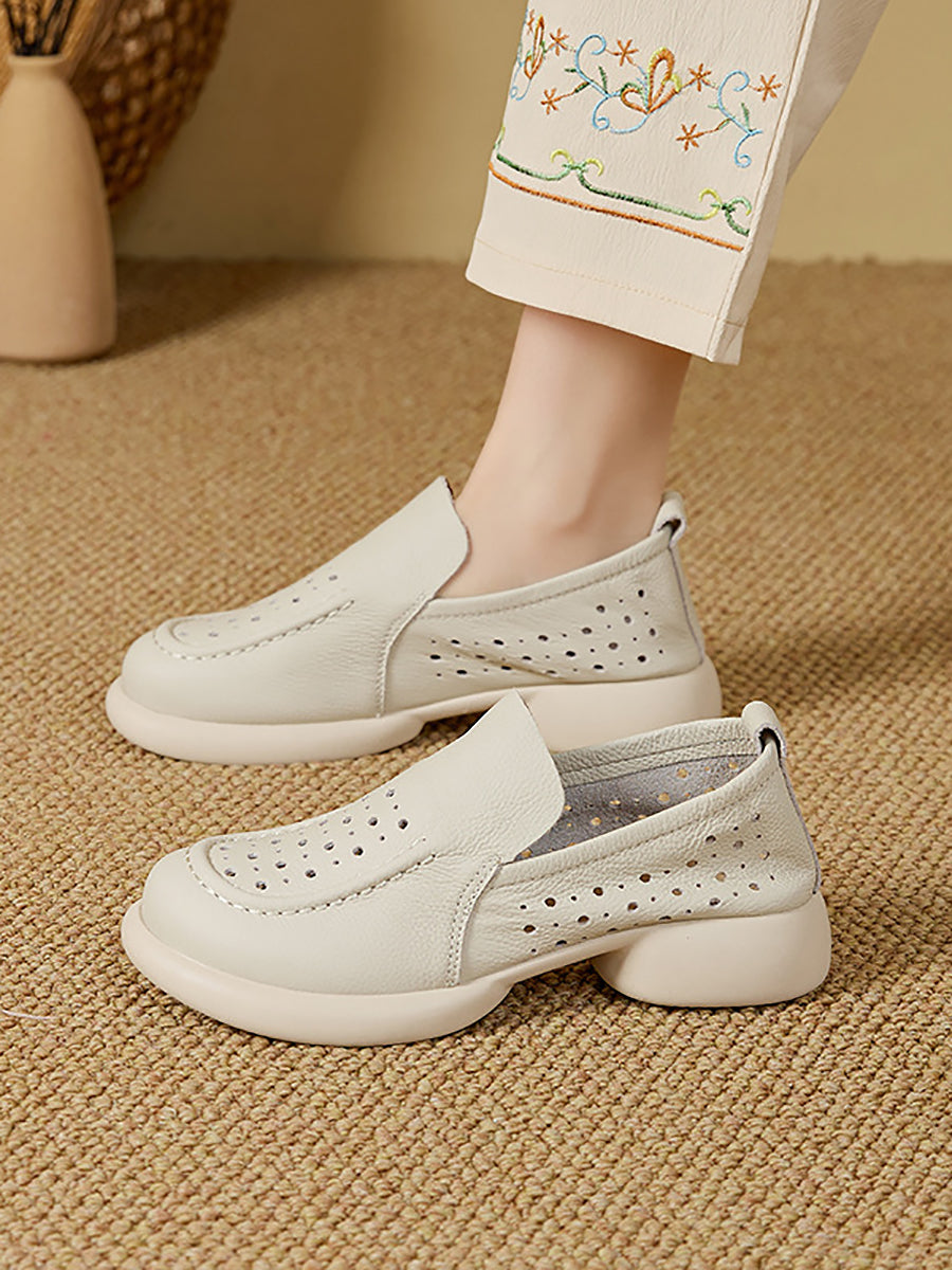 Zapatos de verano de piel auténtica para mujer con tacón bajo.
