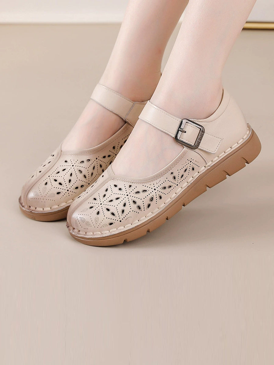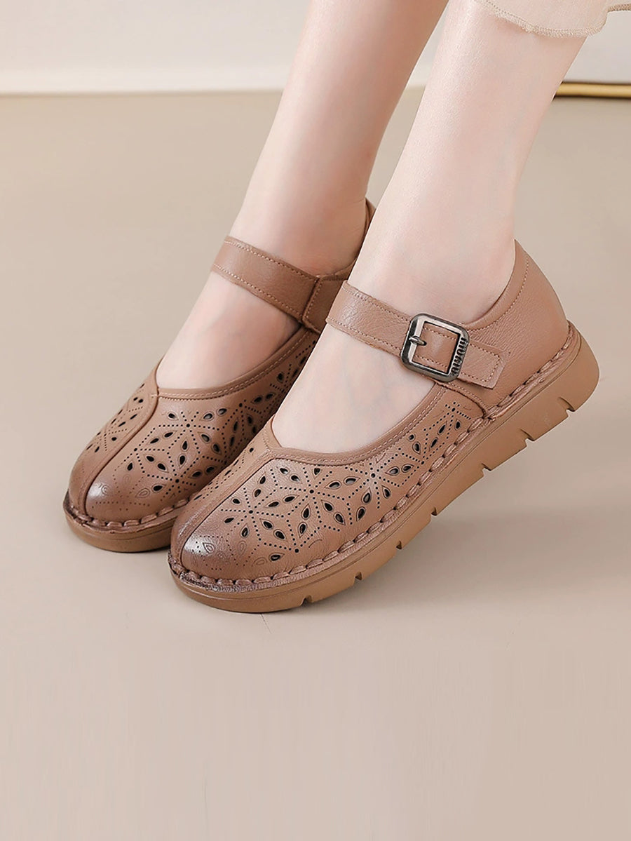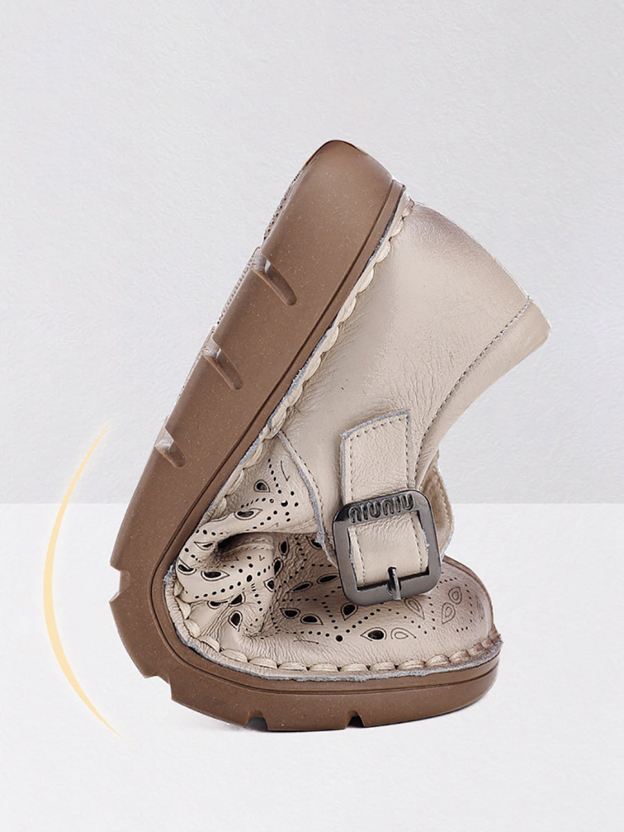 Zapatos planos de verano de piel auténtica con empalmes para mujer