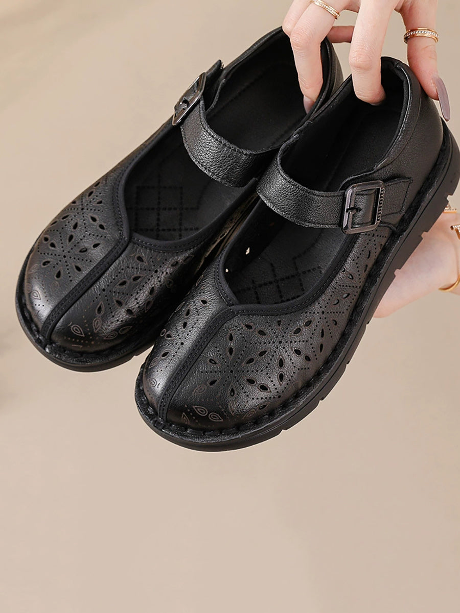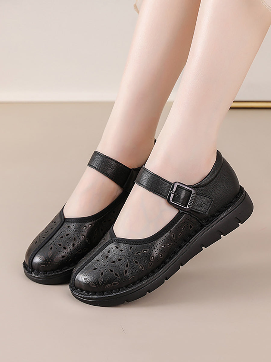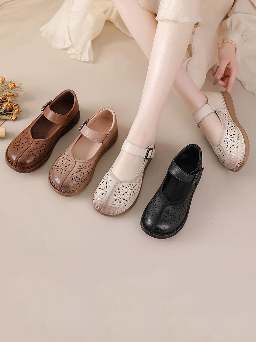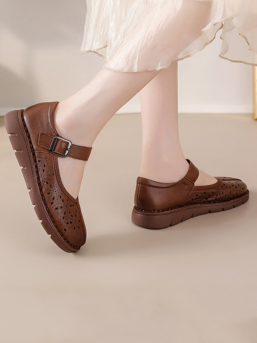 Zapatos planos de verano de piel auténtica con empalmes para mujer