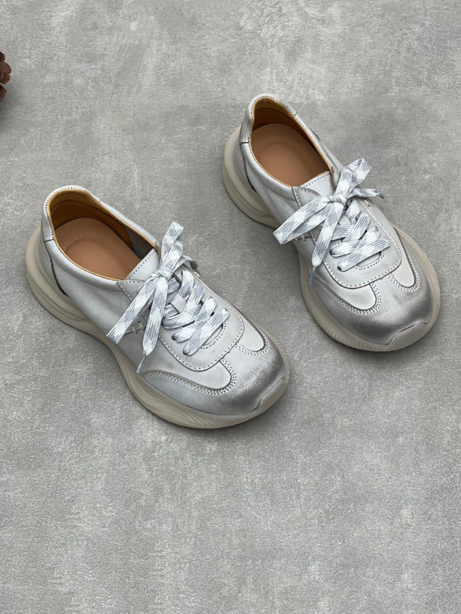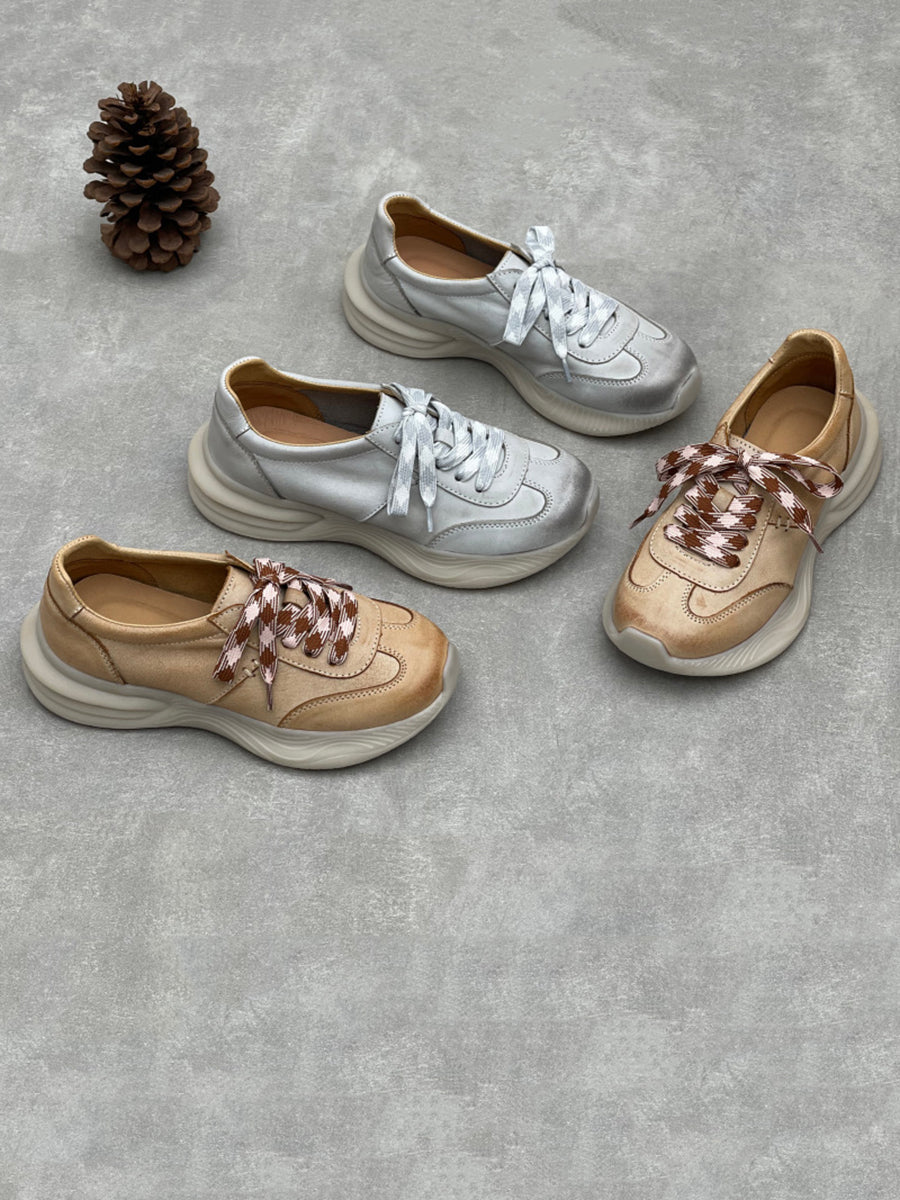Zapatillas deportivas de verano para mujer de piel auténtica
