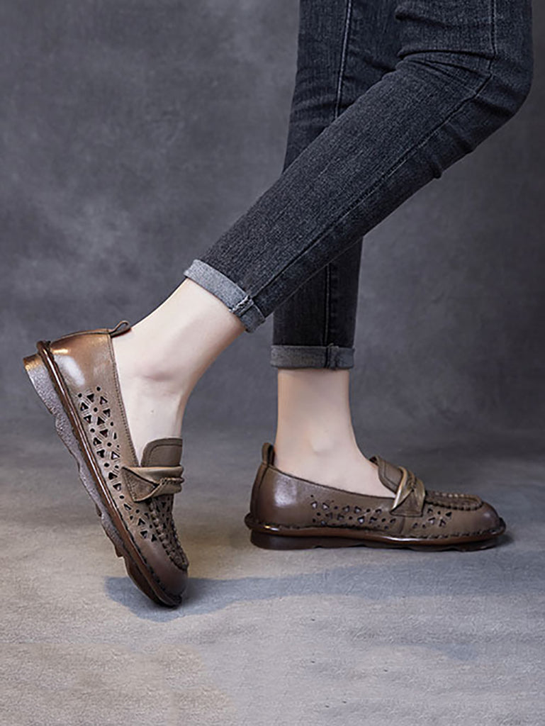 Zapatos de tacón bajo con costuras de cuero genuino de verano para mujer