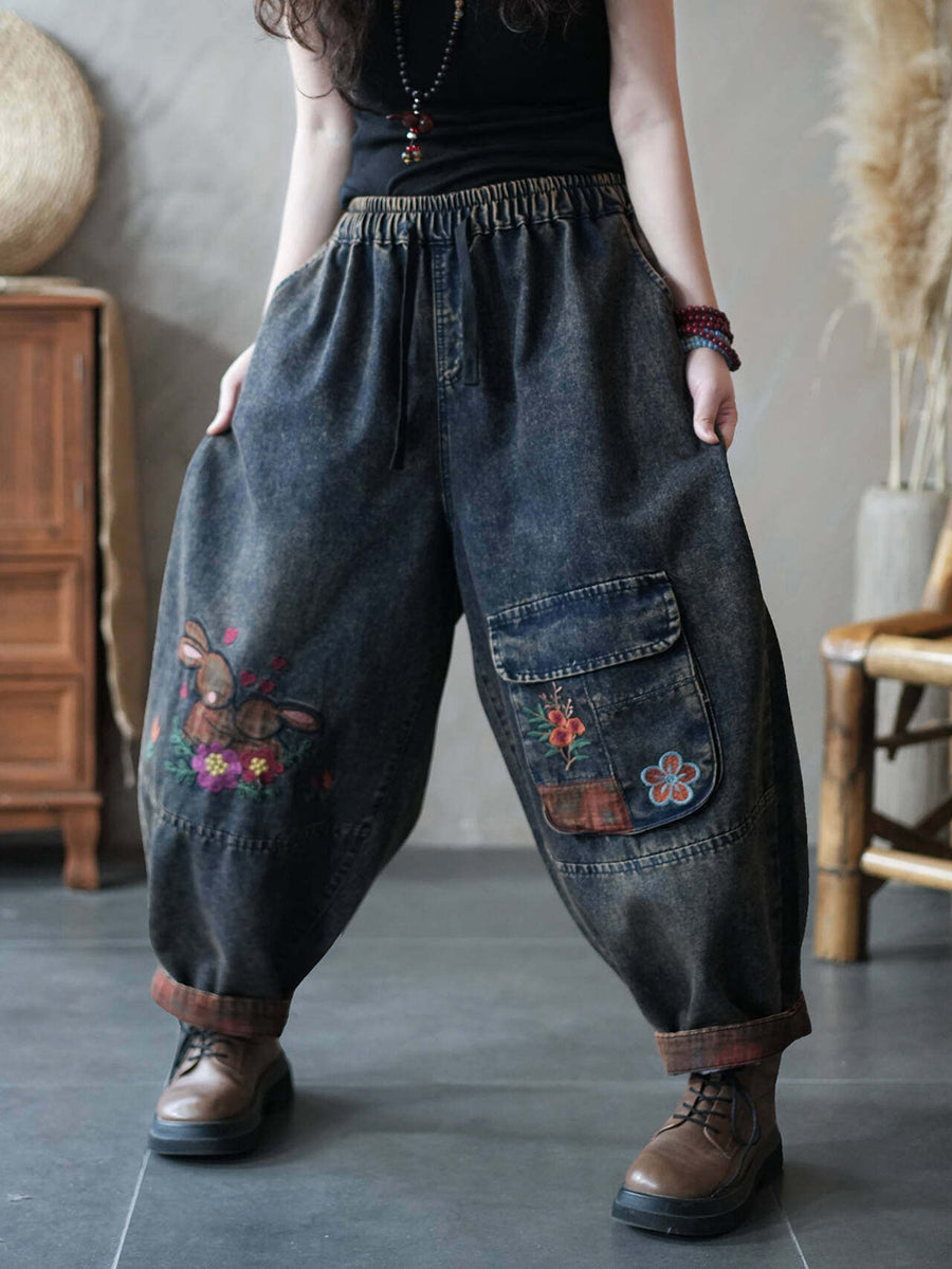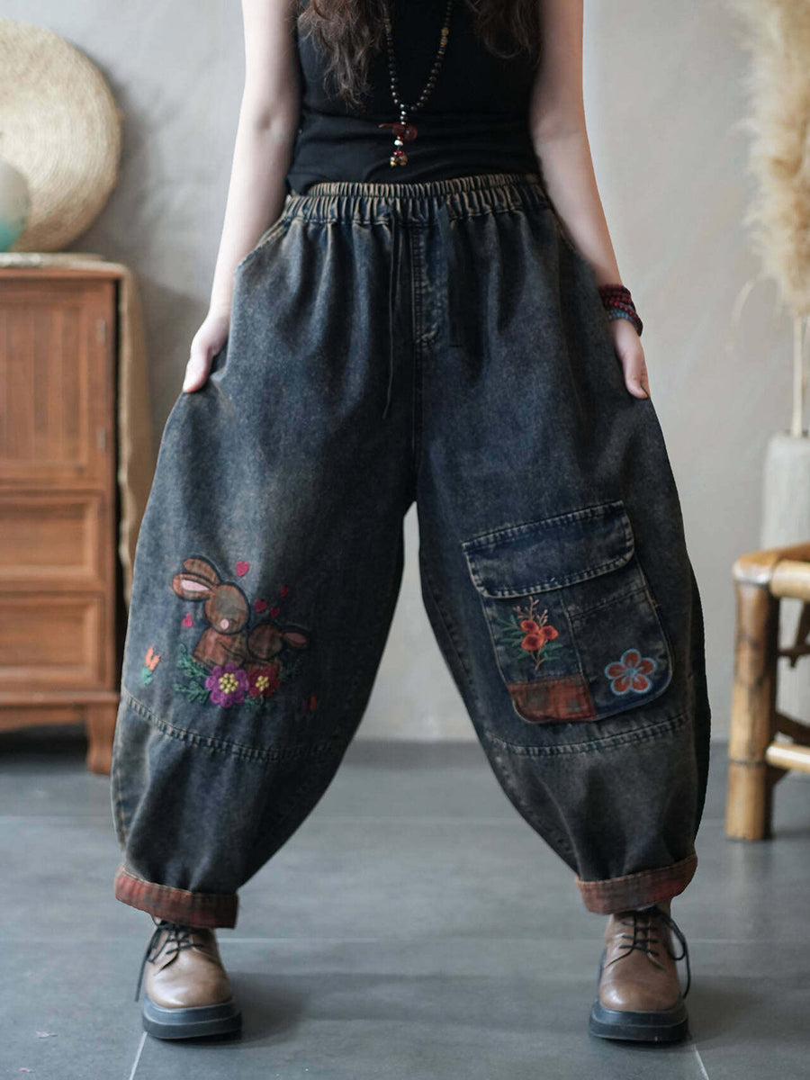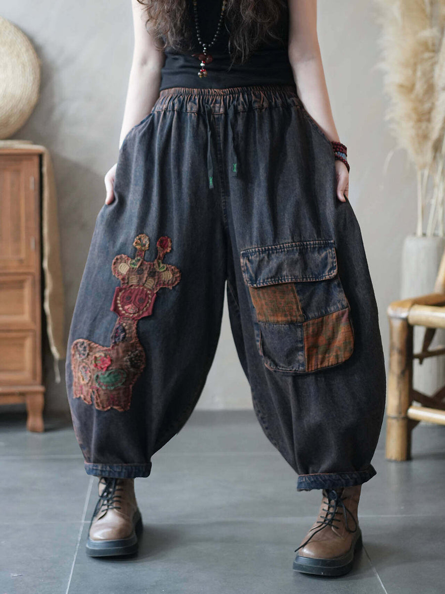 Pantalones vaqueros harem de verano para mujer con estampado de jirafa.