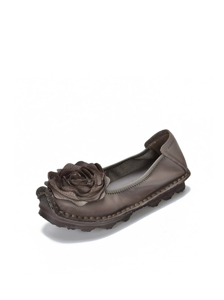 Women Summer Leather Flower Spliced Flat Shoes