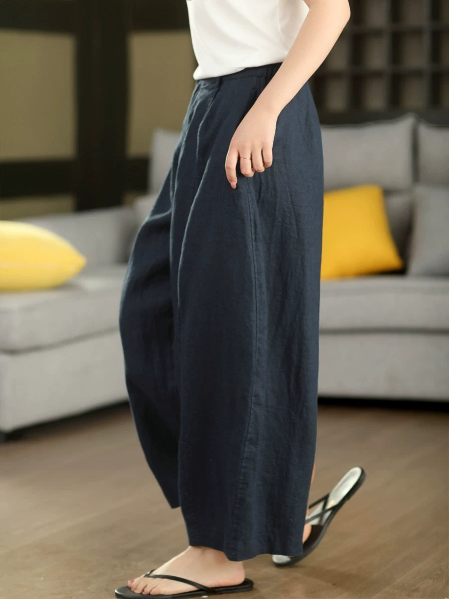 Pantalones harem de lino 100% color liso para mujer, ideales para el verano.