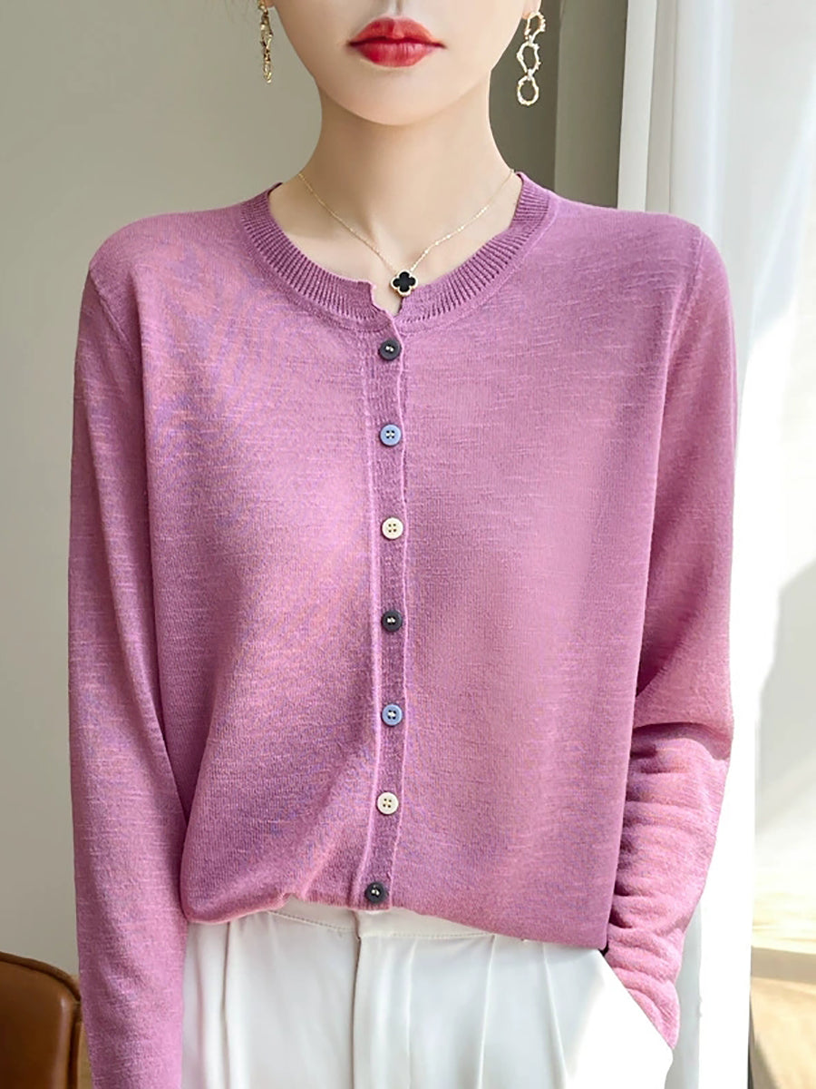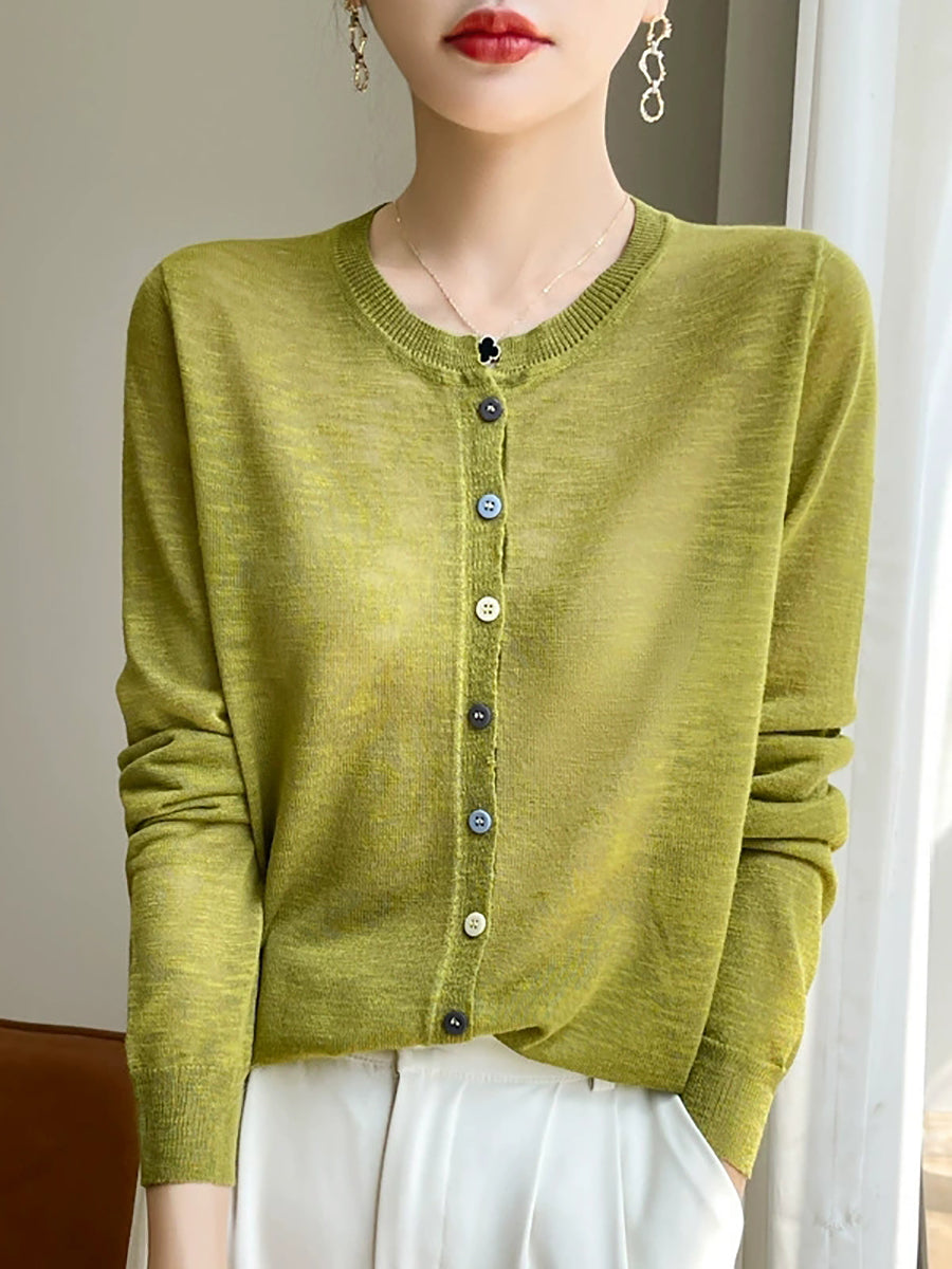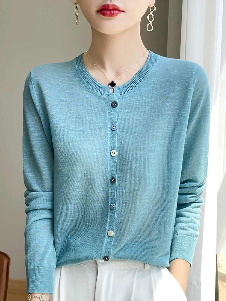 Blusa de verano con cuello redondo y color puro para mujer
