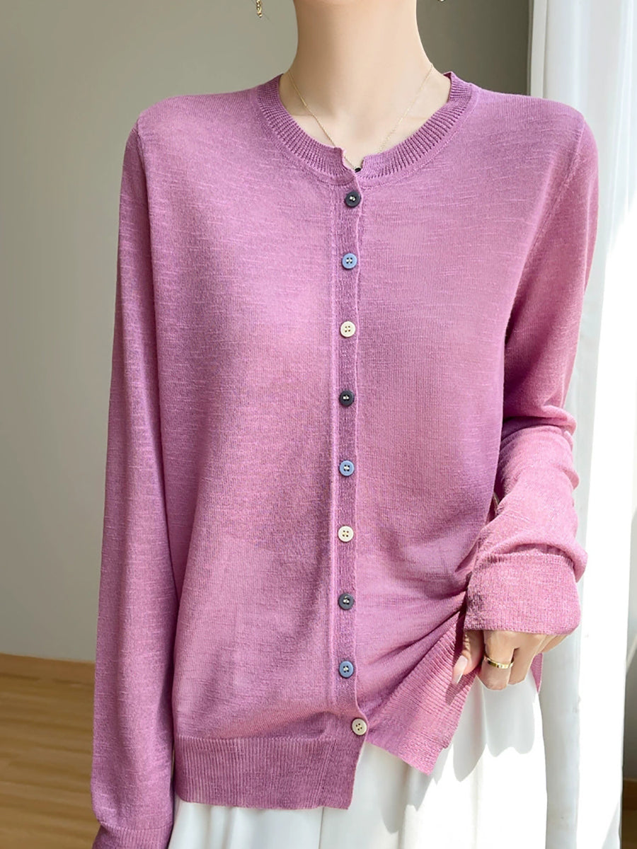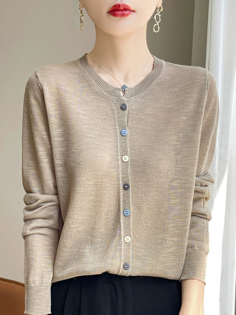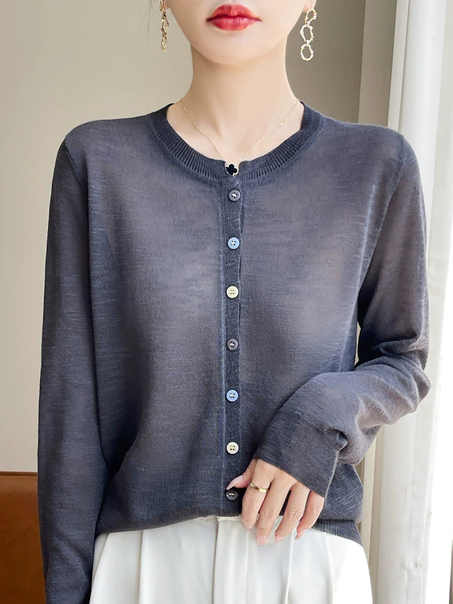 Blusa de verano con cuello redondo y color puro para mujer