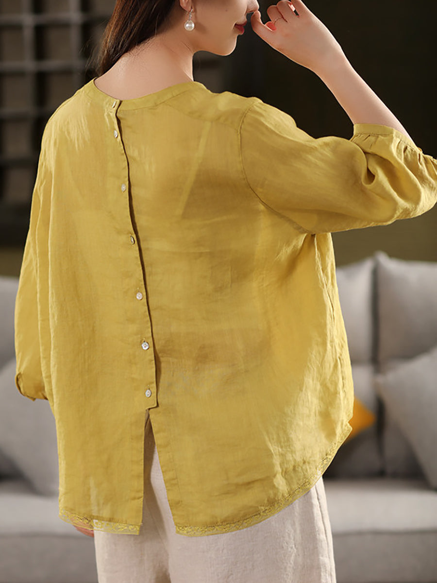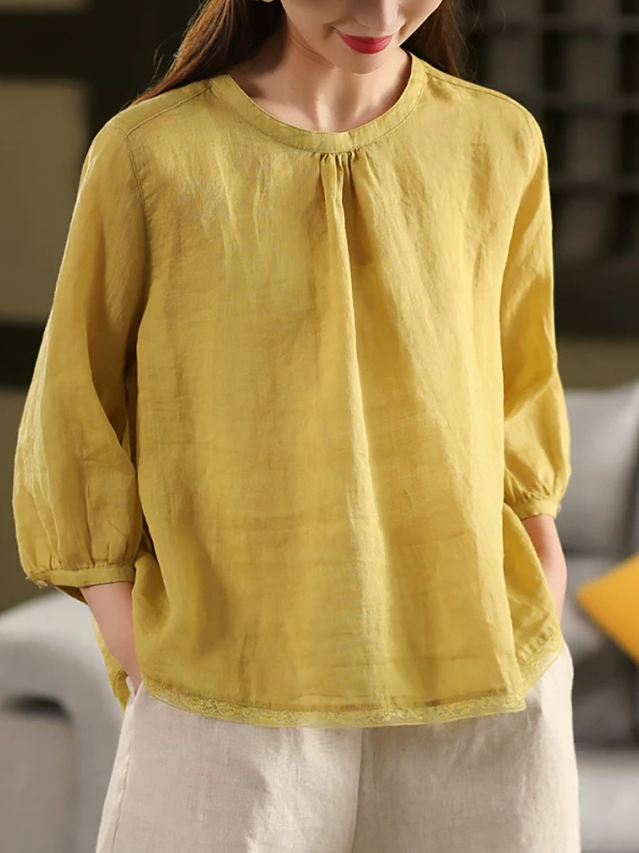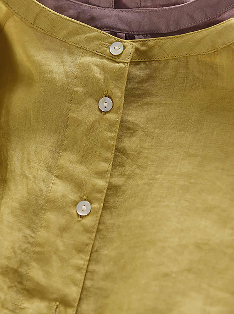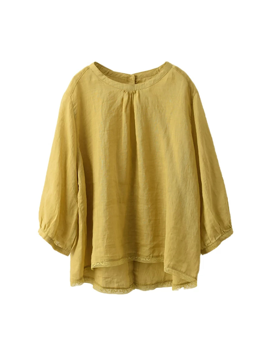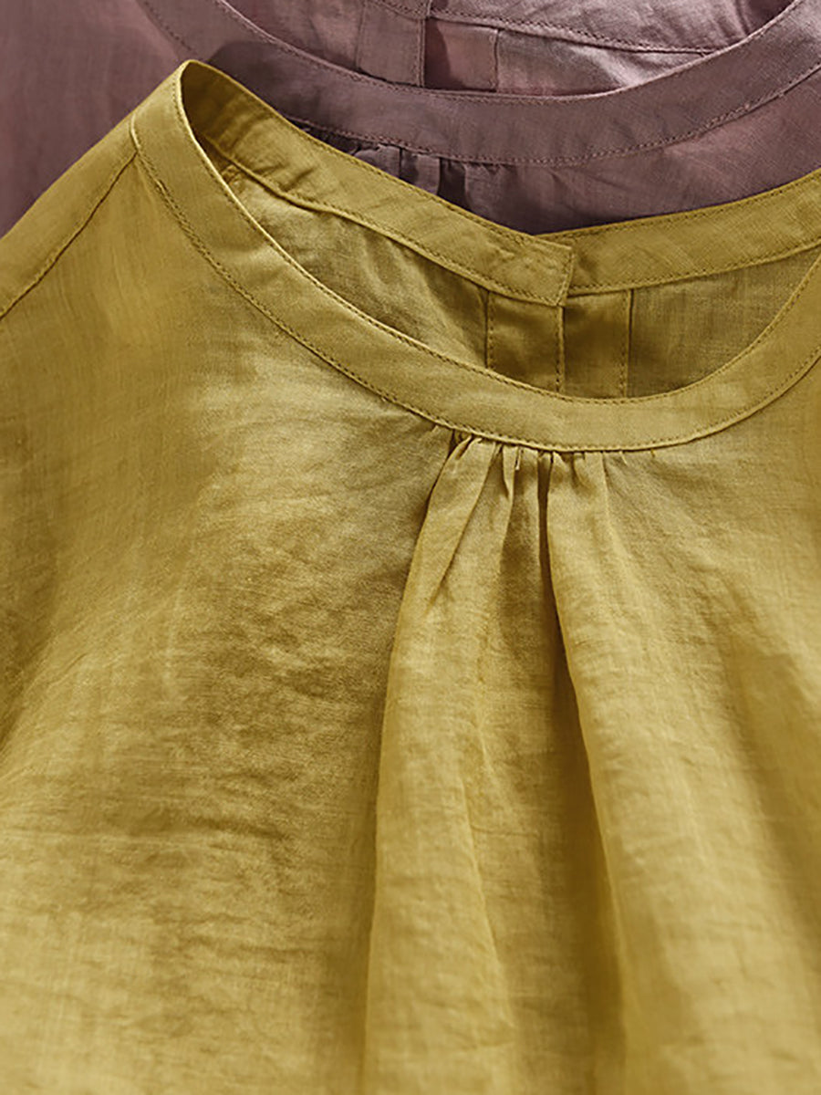 Blusa de verano para mujer, 100 % ramio, color puro, cuello alto