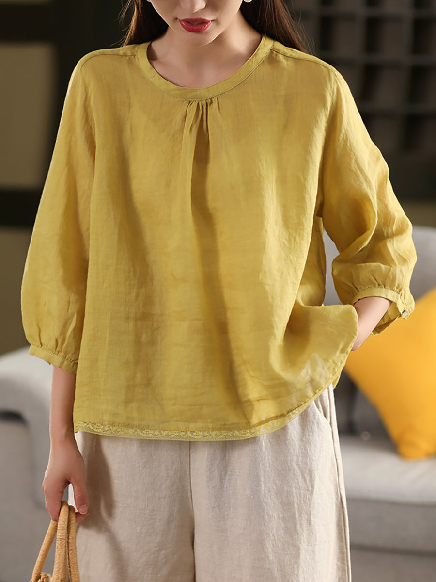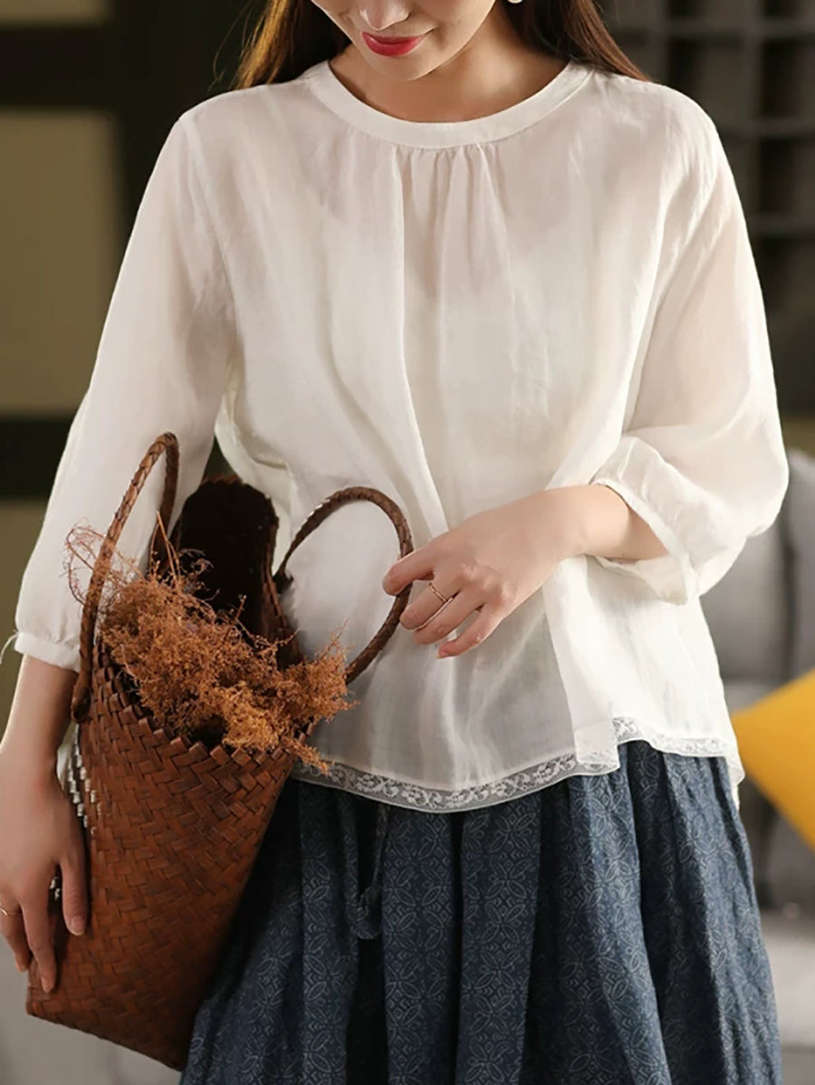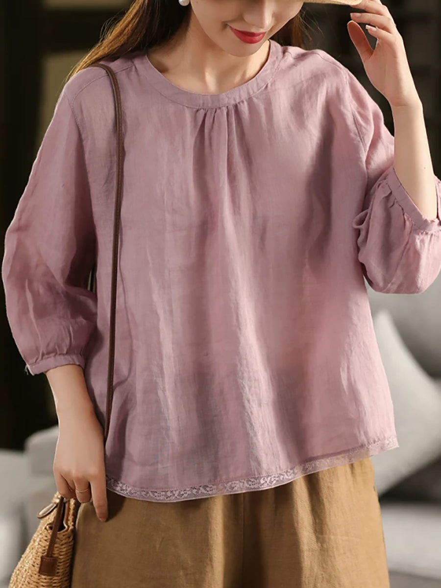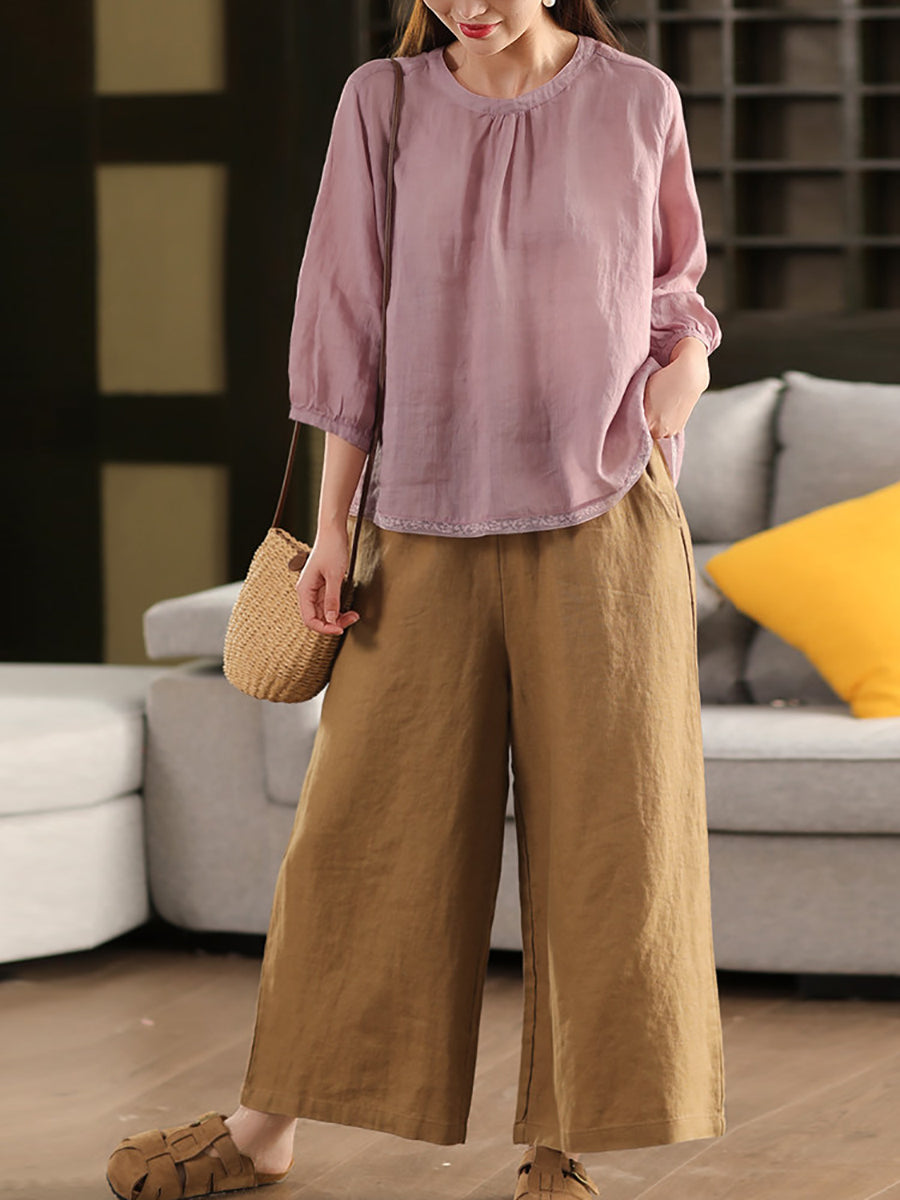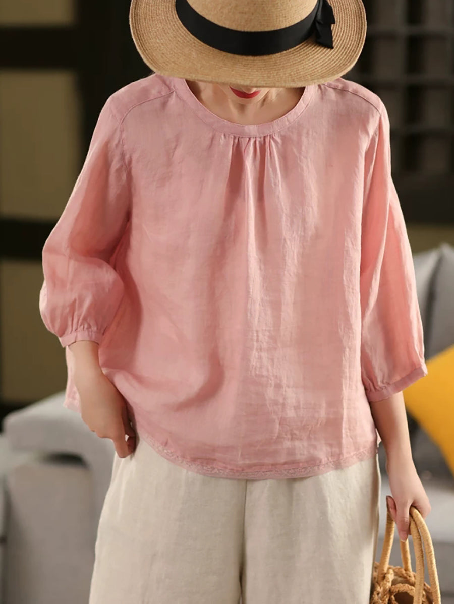 Blusa de verano para mujer, 100 % ramio, color puro, cuello alto