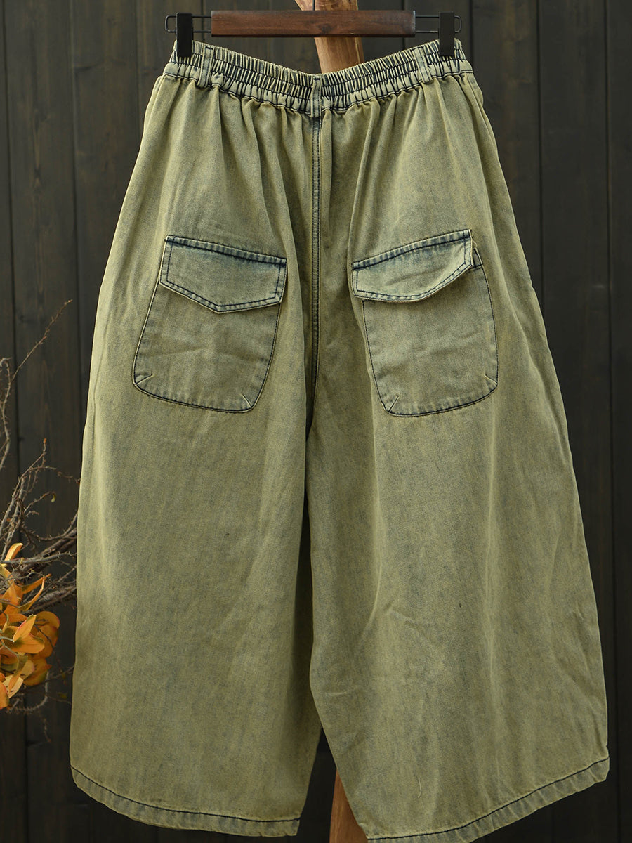Pantalones vaqueros anchos de mezclilla estilo patchwork retro para mujer, ideales para el verano.
