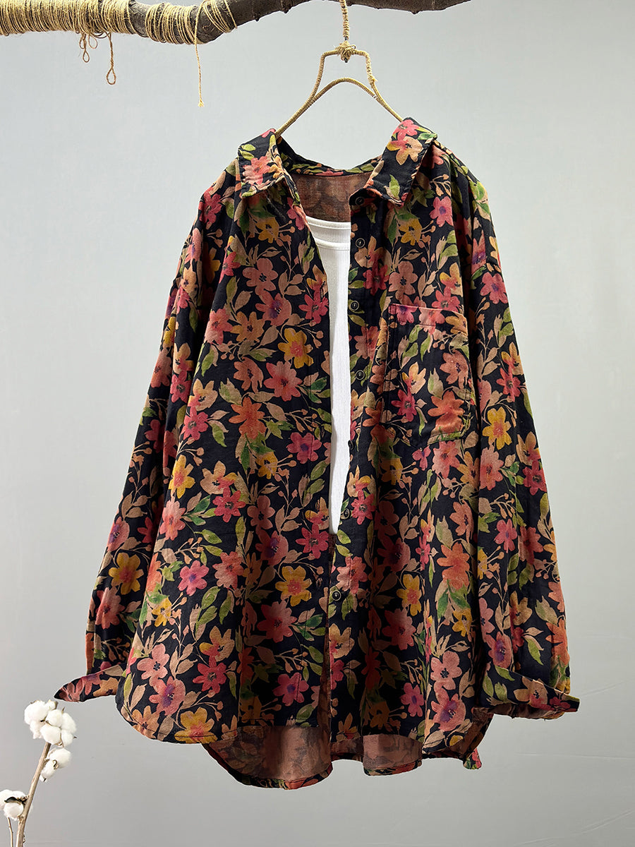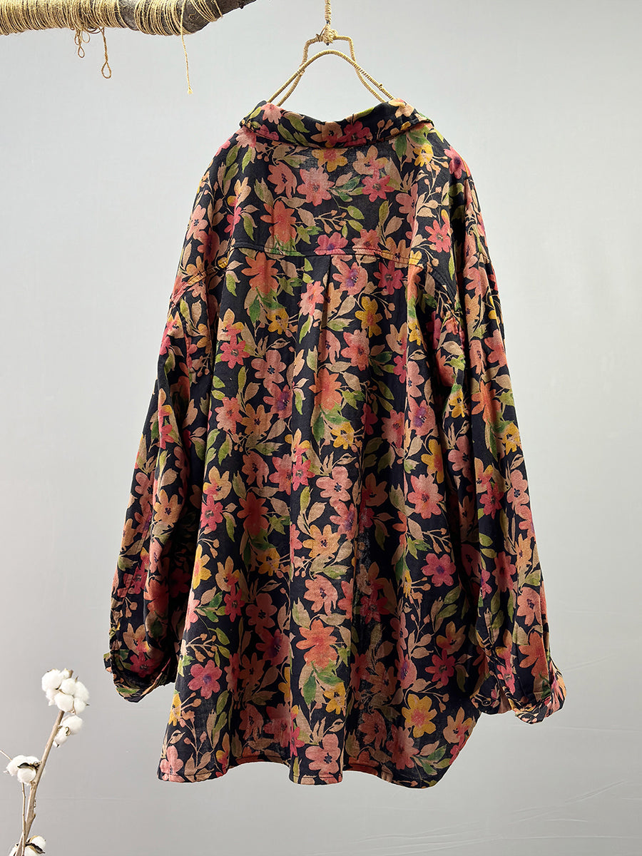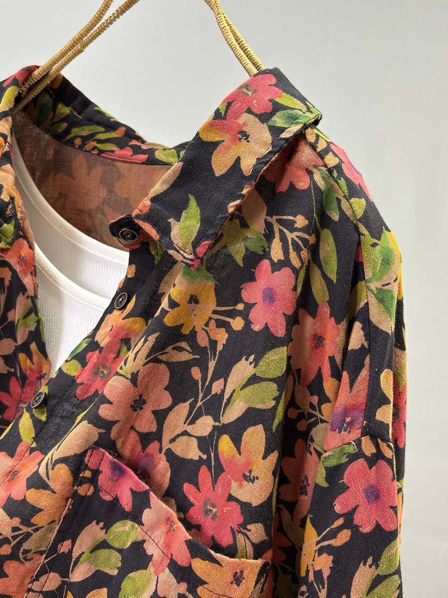 Camisa de verano para mujer, 100 % algodón, con estampado vintage de flores