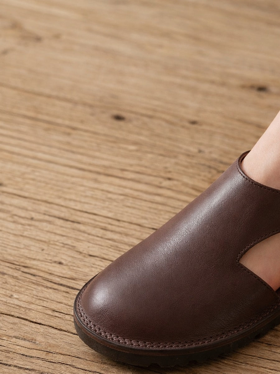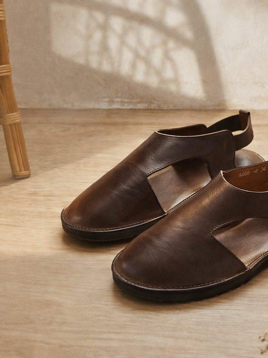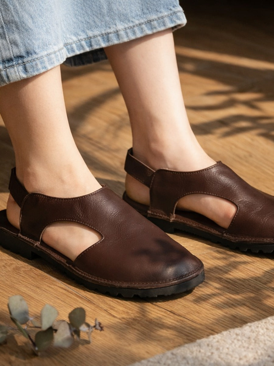 Sandalias de verano vintage de piel auténtica con aberturas para mujer