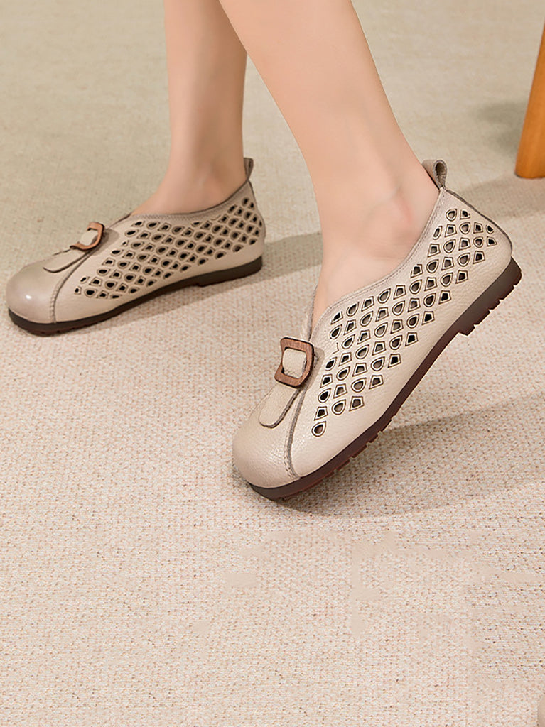 Zapatos planos de verano vintage de cuero con empalmes para mujer