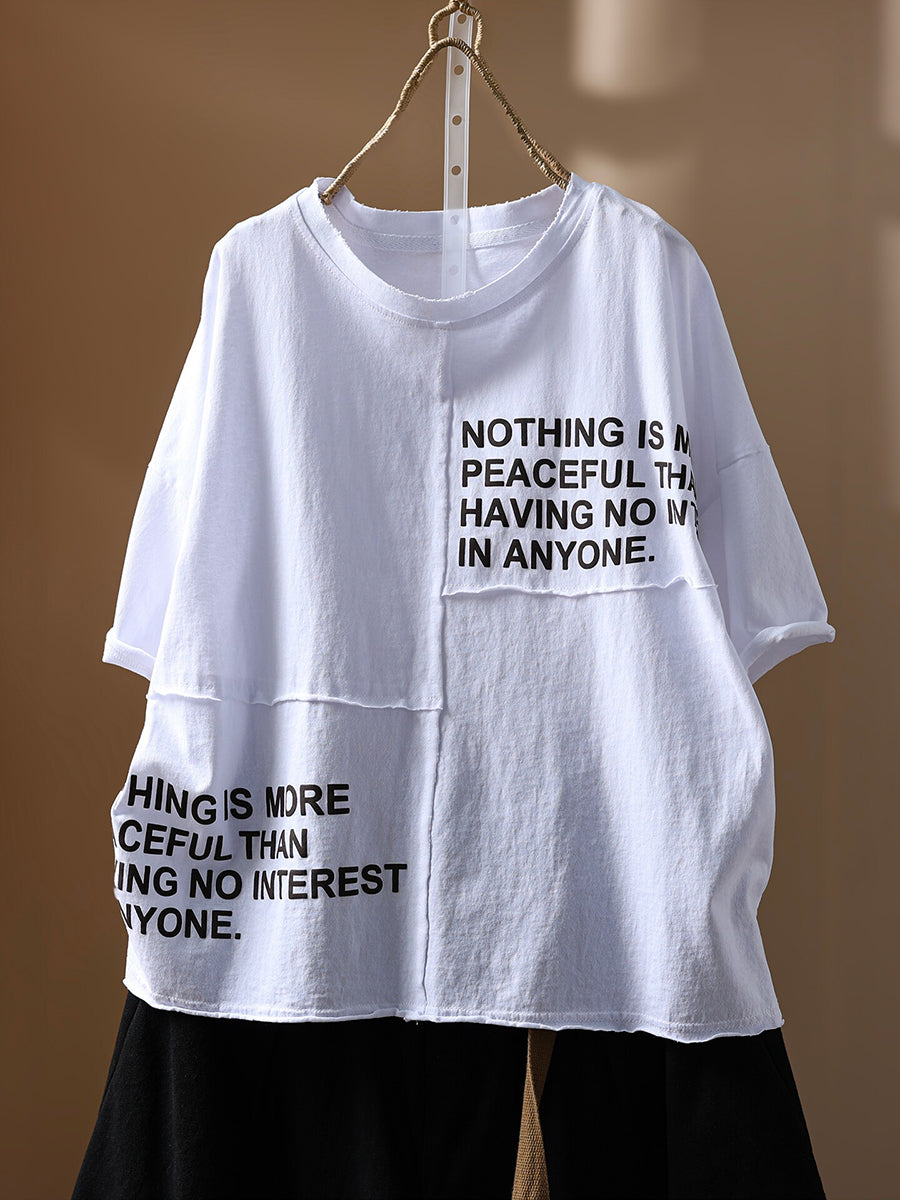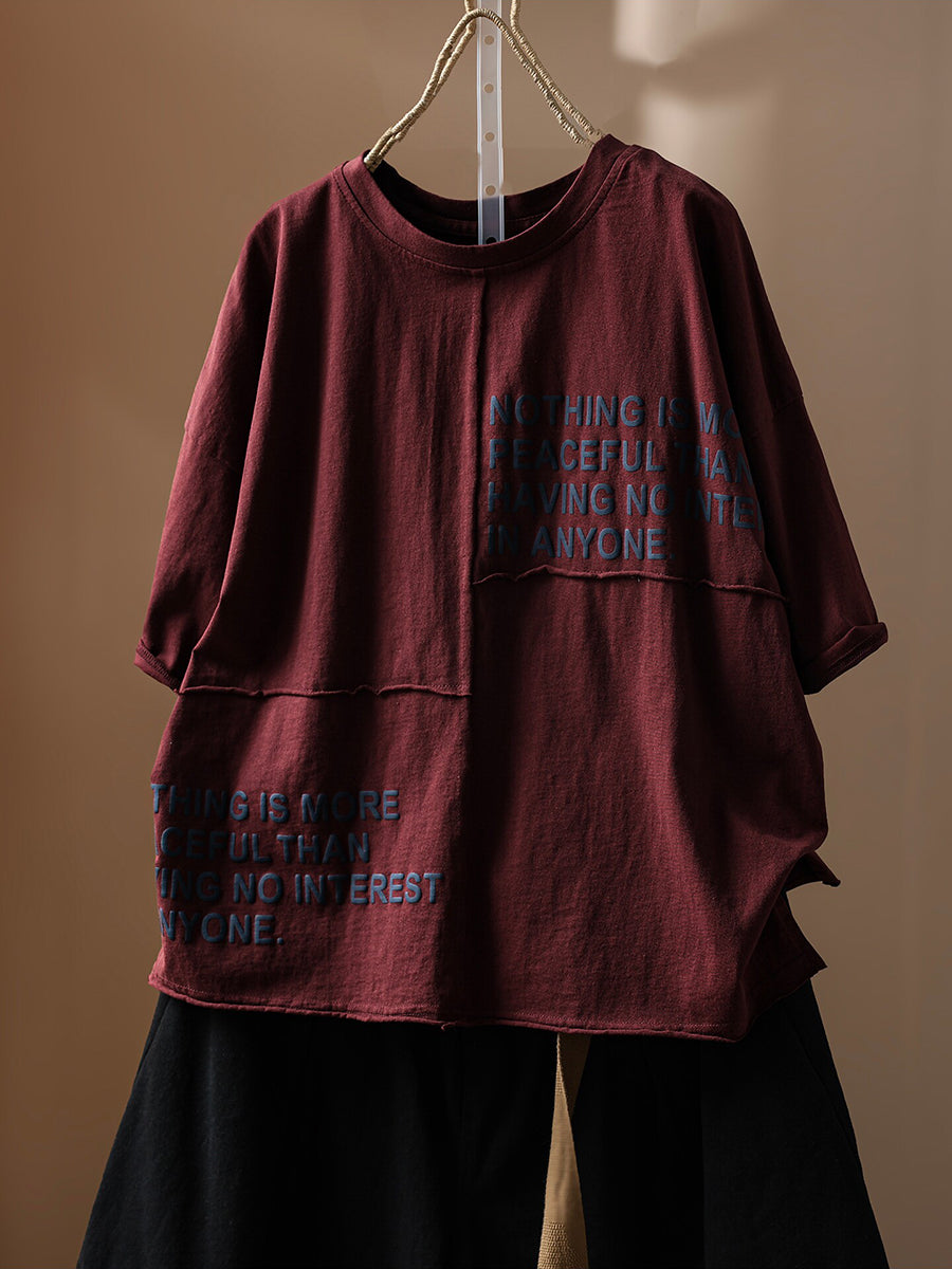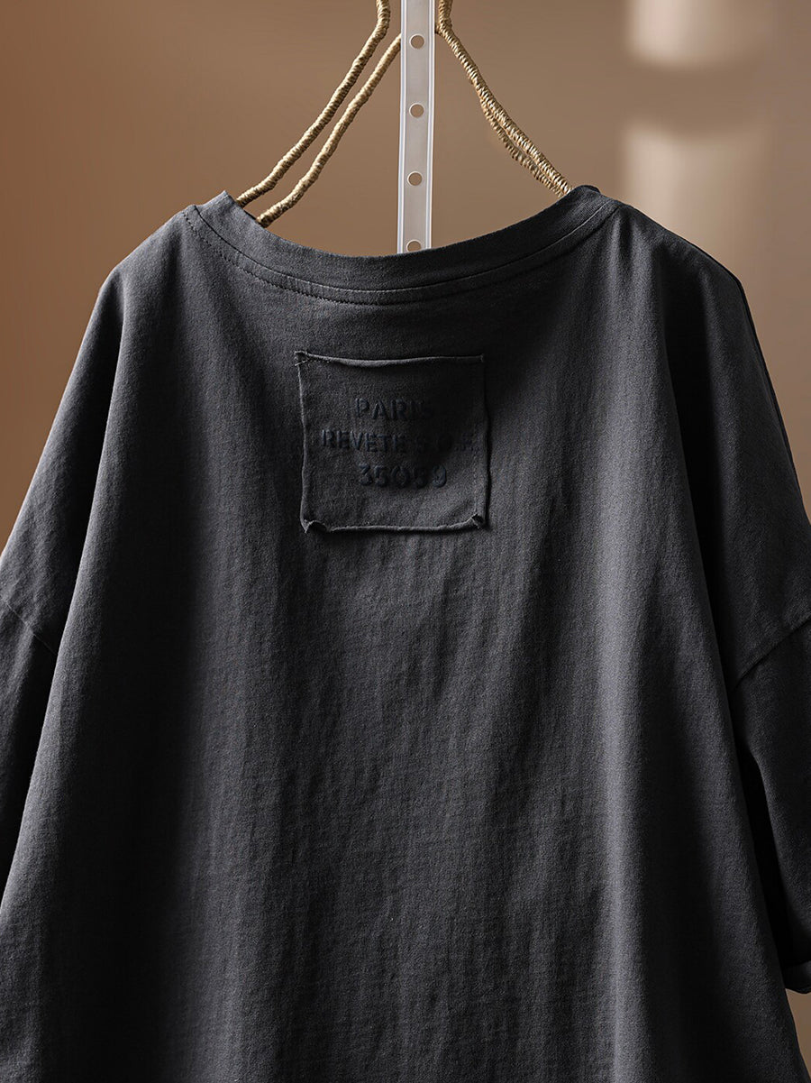 Camiseta de verano vintage para mujer con cuello redondo y detalles de algodón 100%.