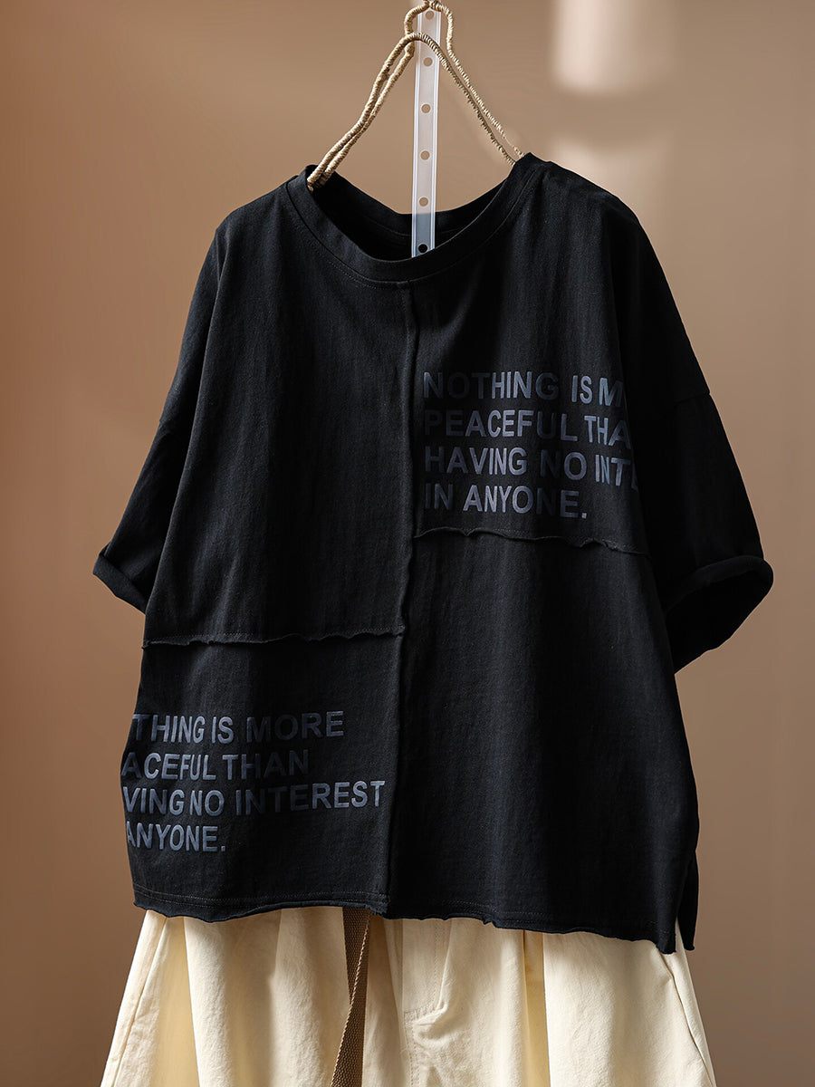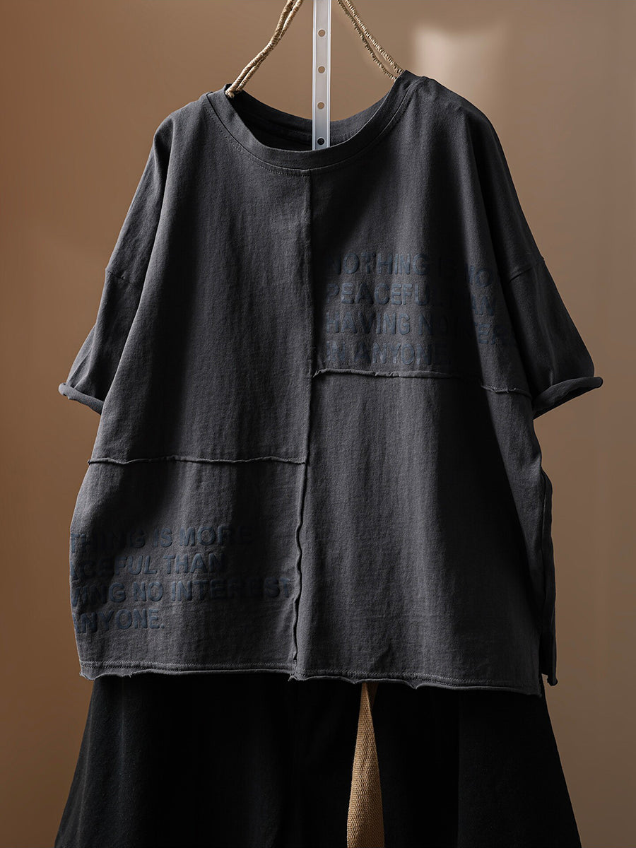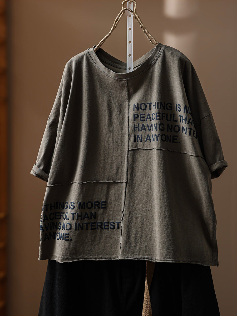 Camiseta de verano vintage para mujer con cuello redondo y detalles de algodón 100%.