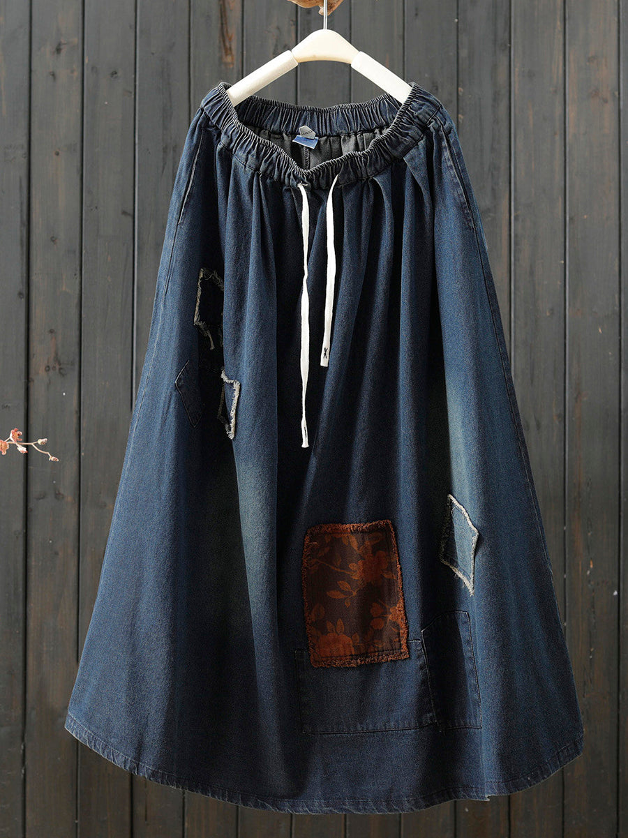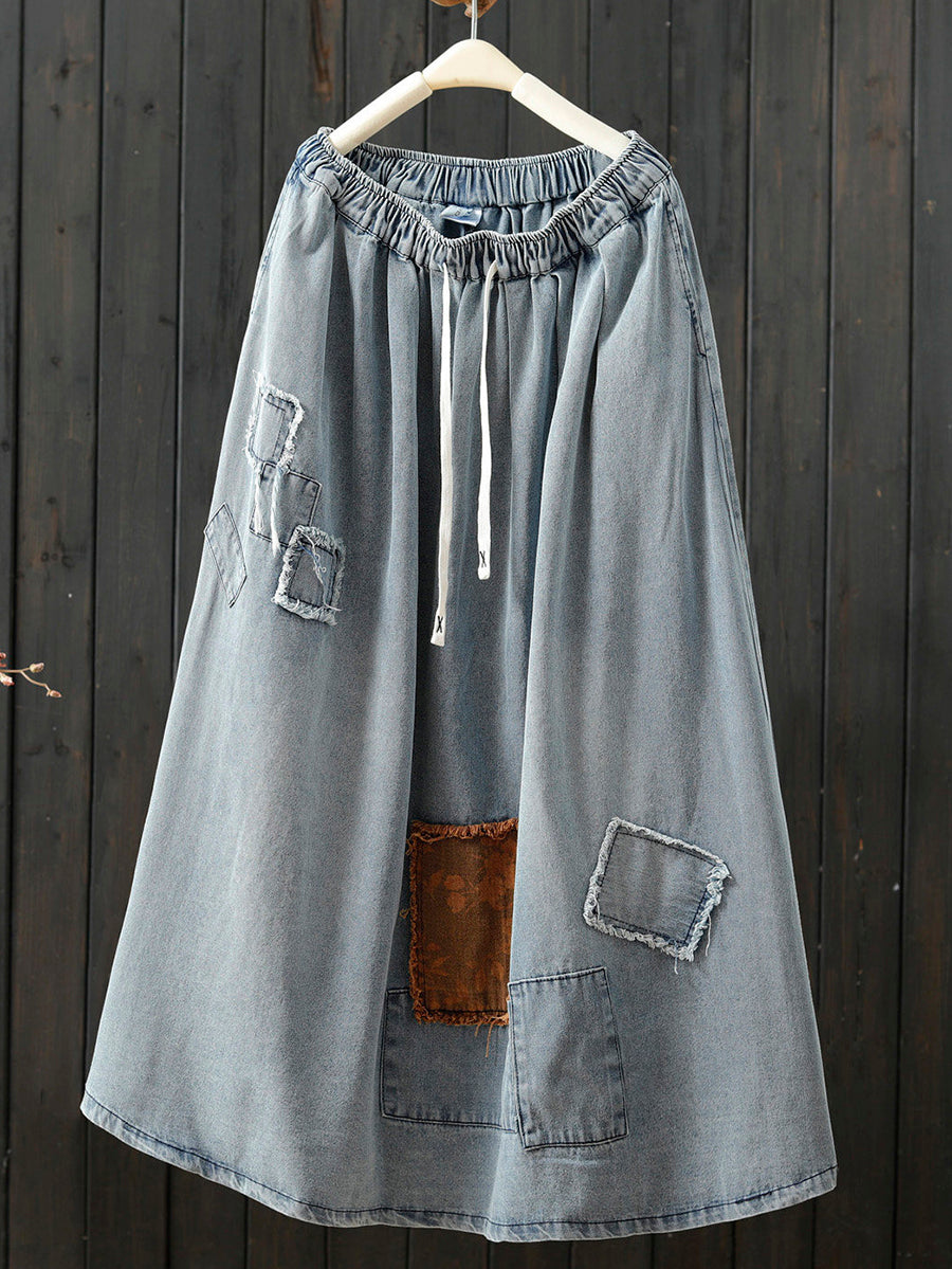 Falda vaquera de patchwork vintage de verano para mujer en forma de A