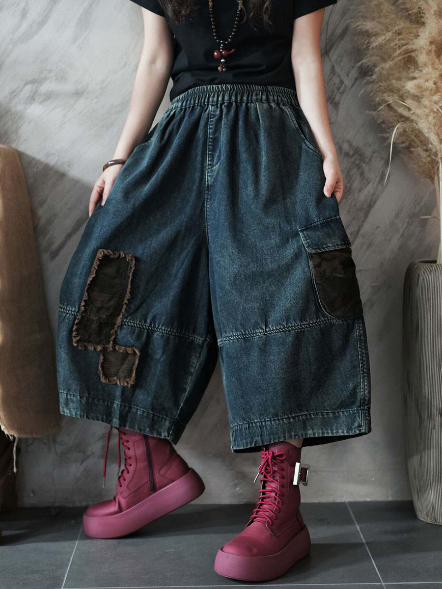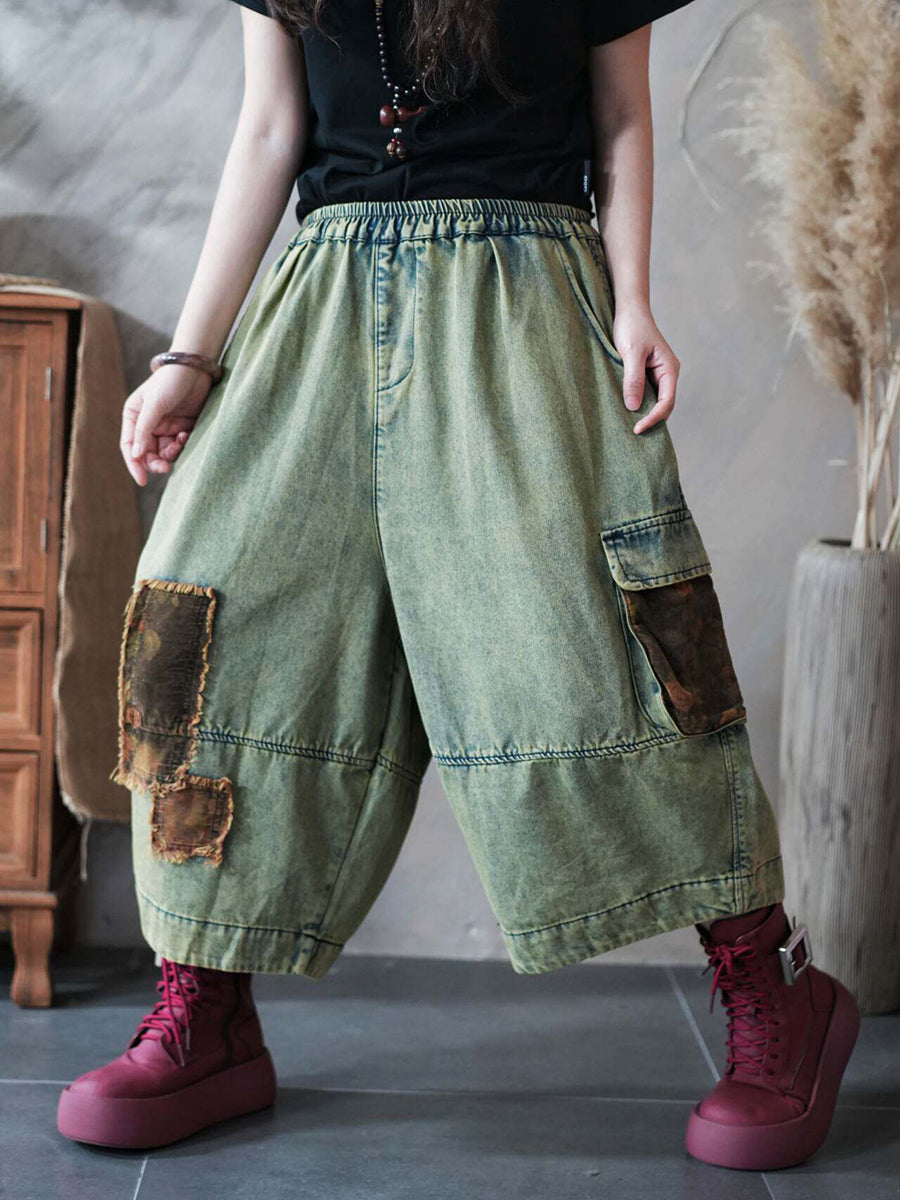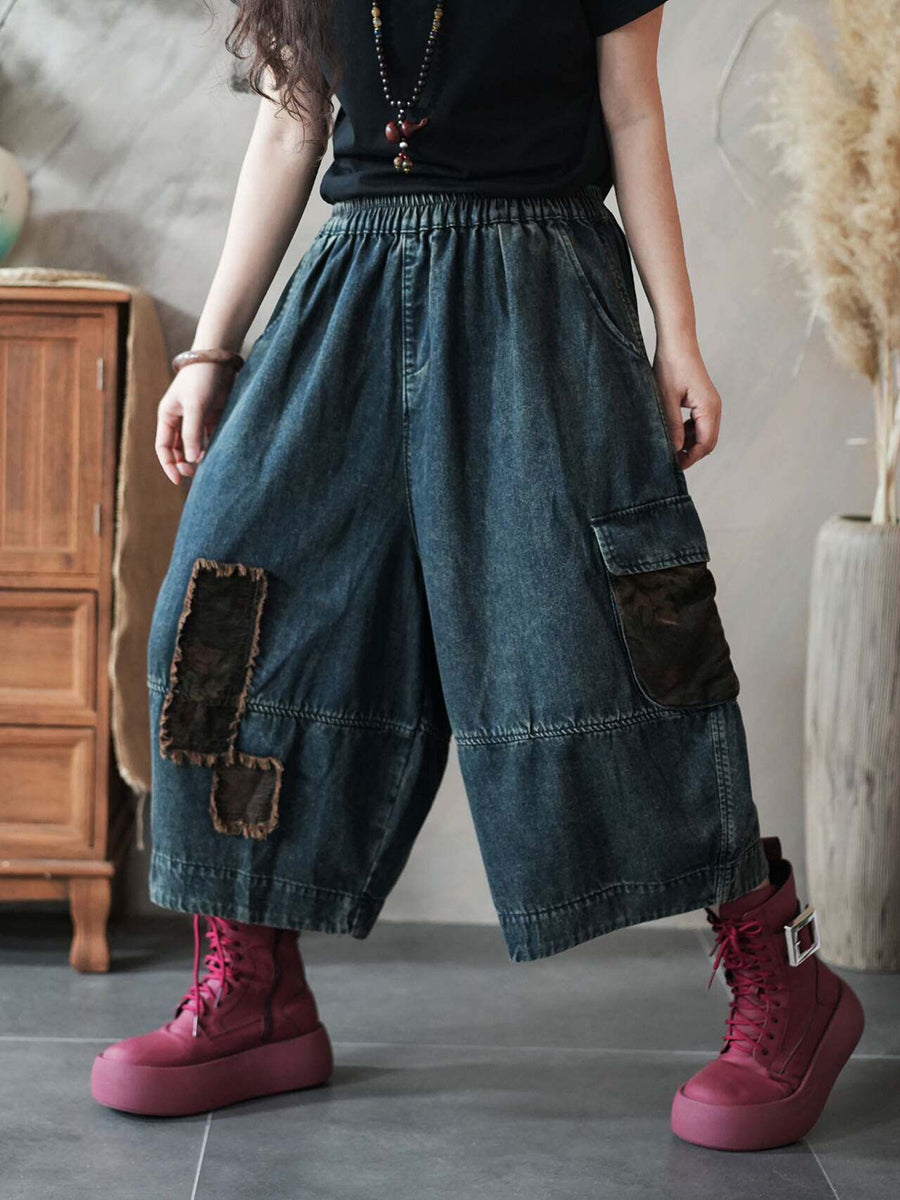 Pantalones vaqueros de pierna ancha con diseño de patchwork vintage de verano para mujer