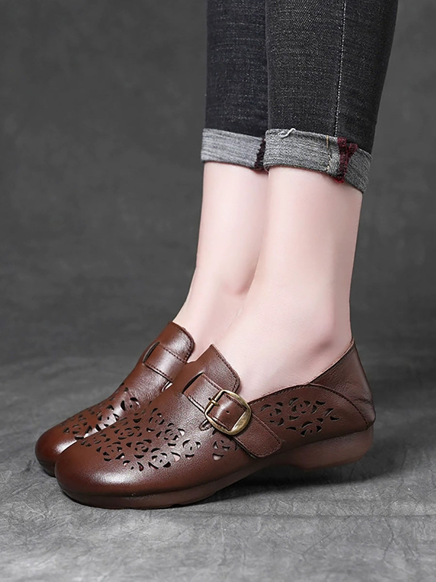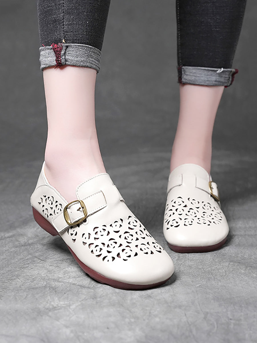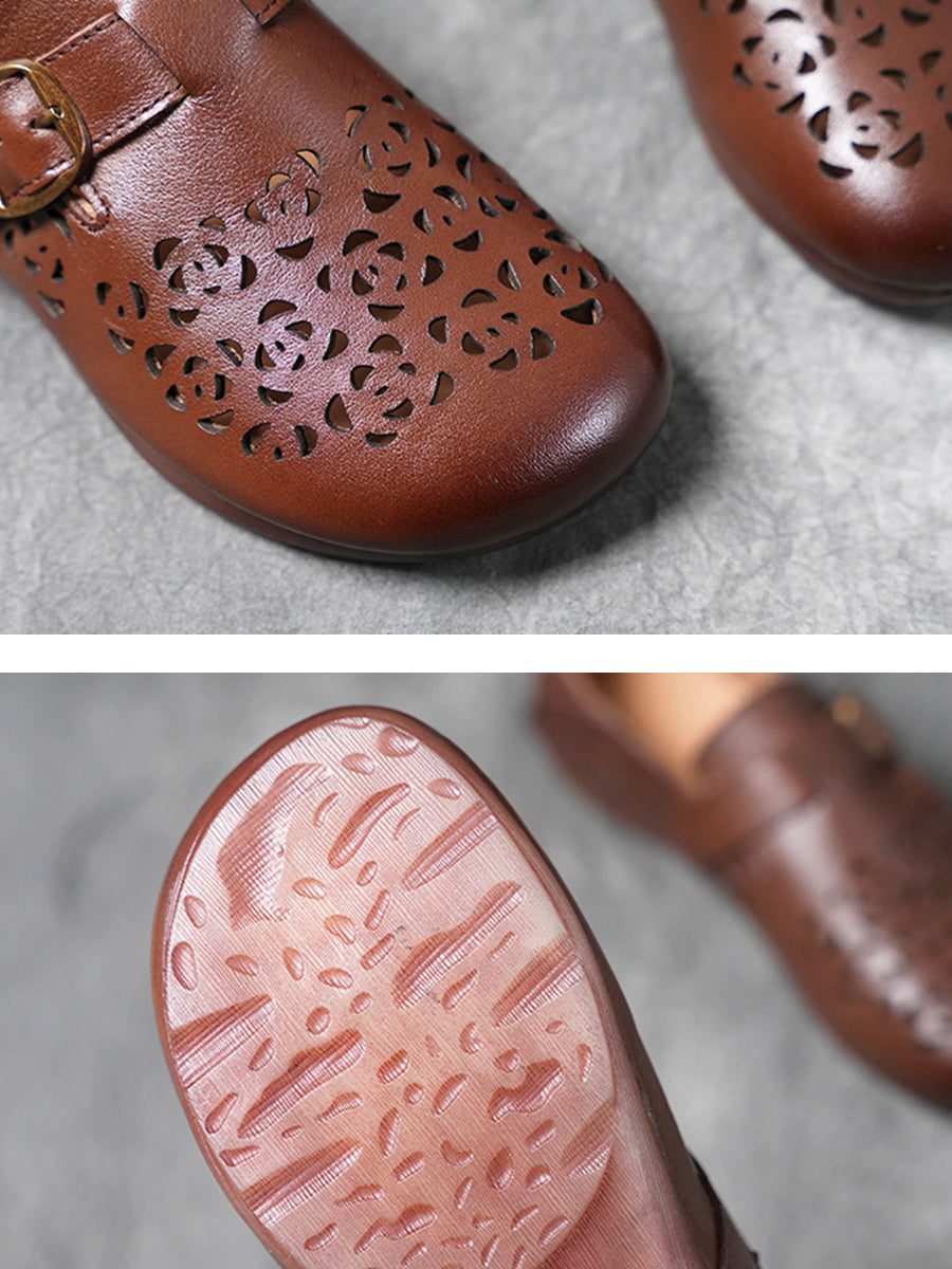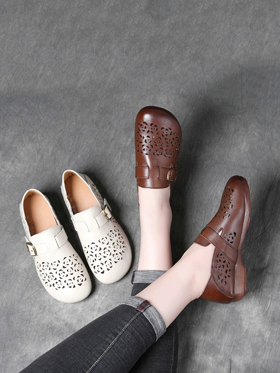 Zapatos de tacón bajo de piel suave estilo vintage para mujer, ideales para el verano.