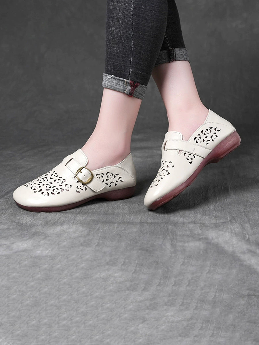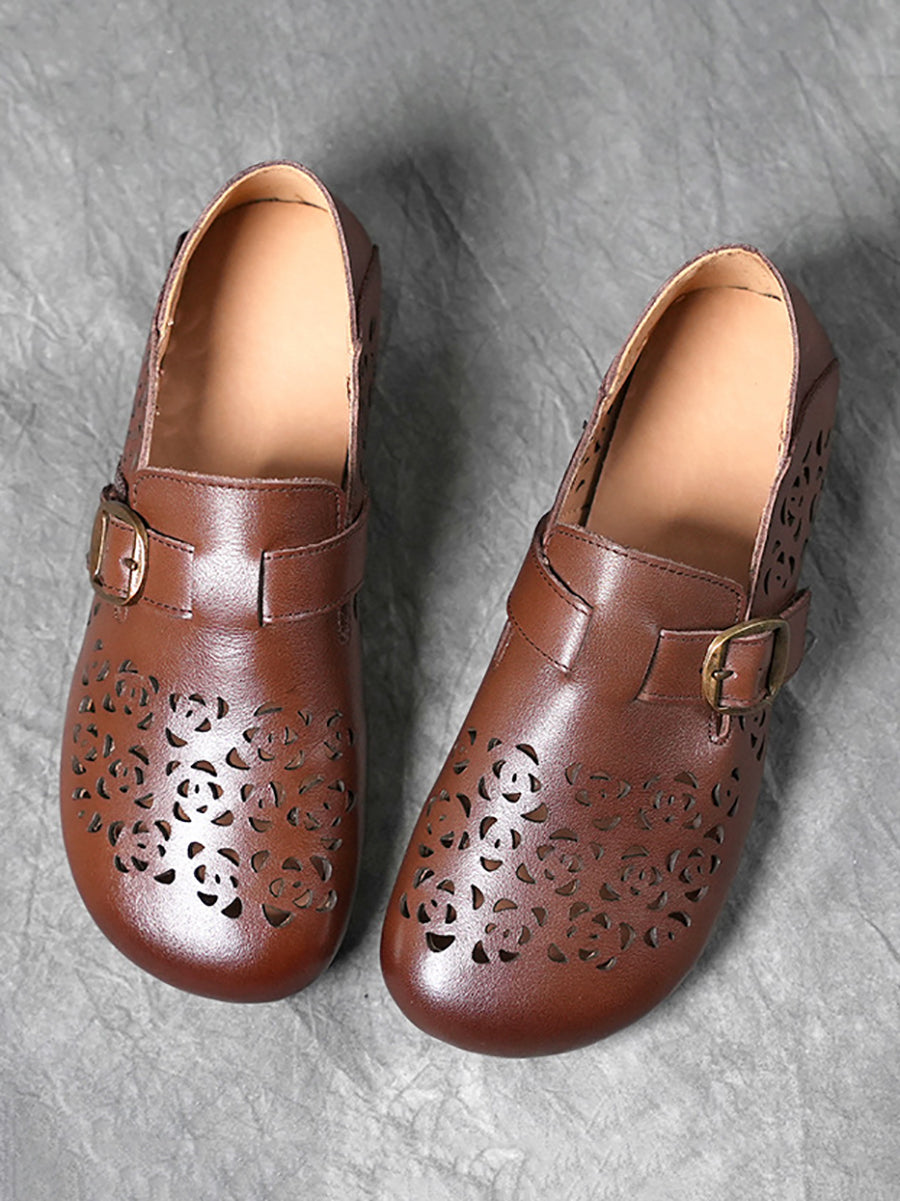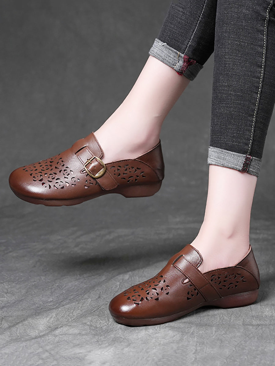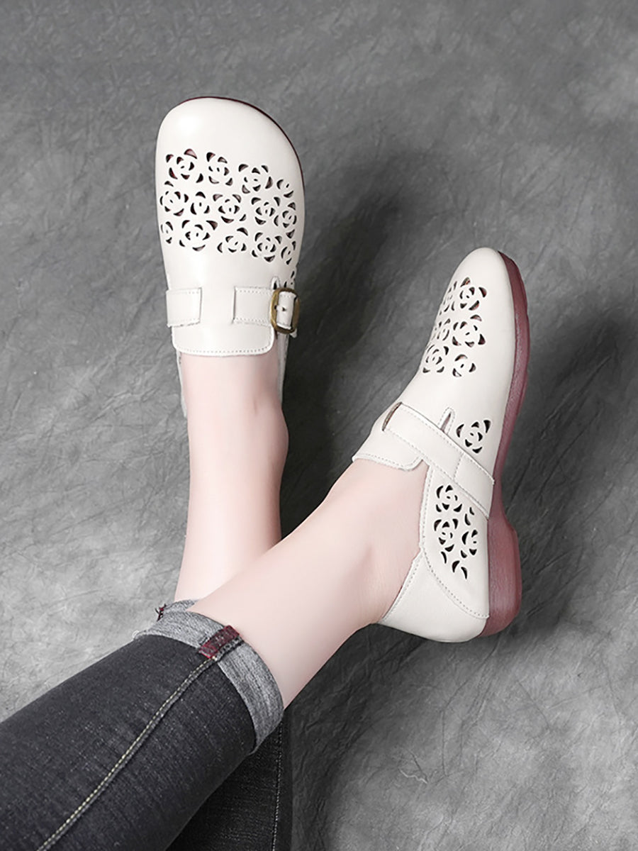 Zapatos de tacón bajo de piel suave estilo vintage para mujer, ideales para el verano.