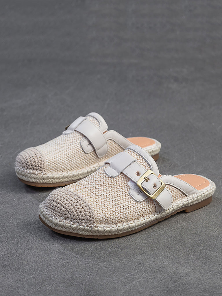 Pantuflas de verano para mujer con tejido de cuero empalmado
