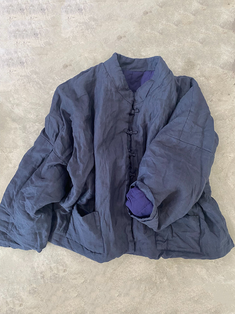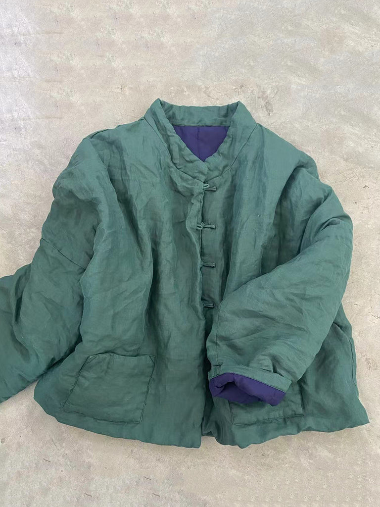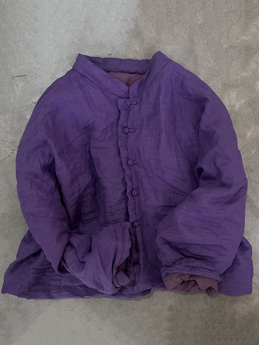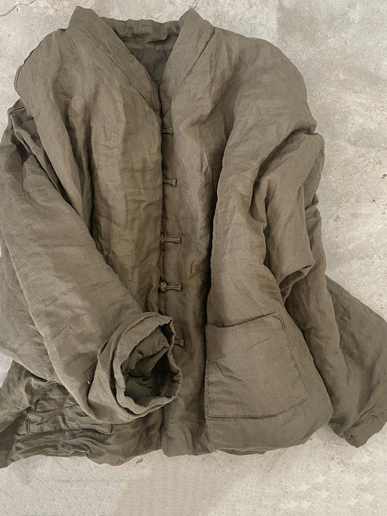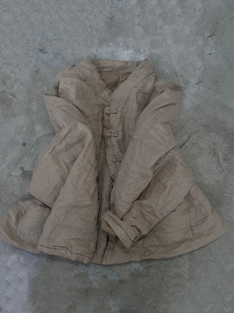Esta camisa está confeccionada en ramio y presenta un patrón liso con cuello vuelto y mangas largas y regulares. Su estilo artístico la hace perfecta para usar durante las estaciones de primavera y otoño.