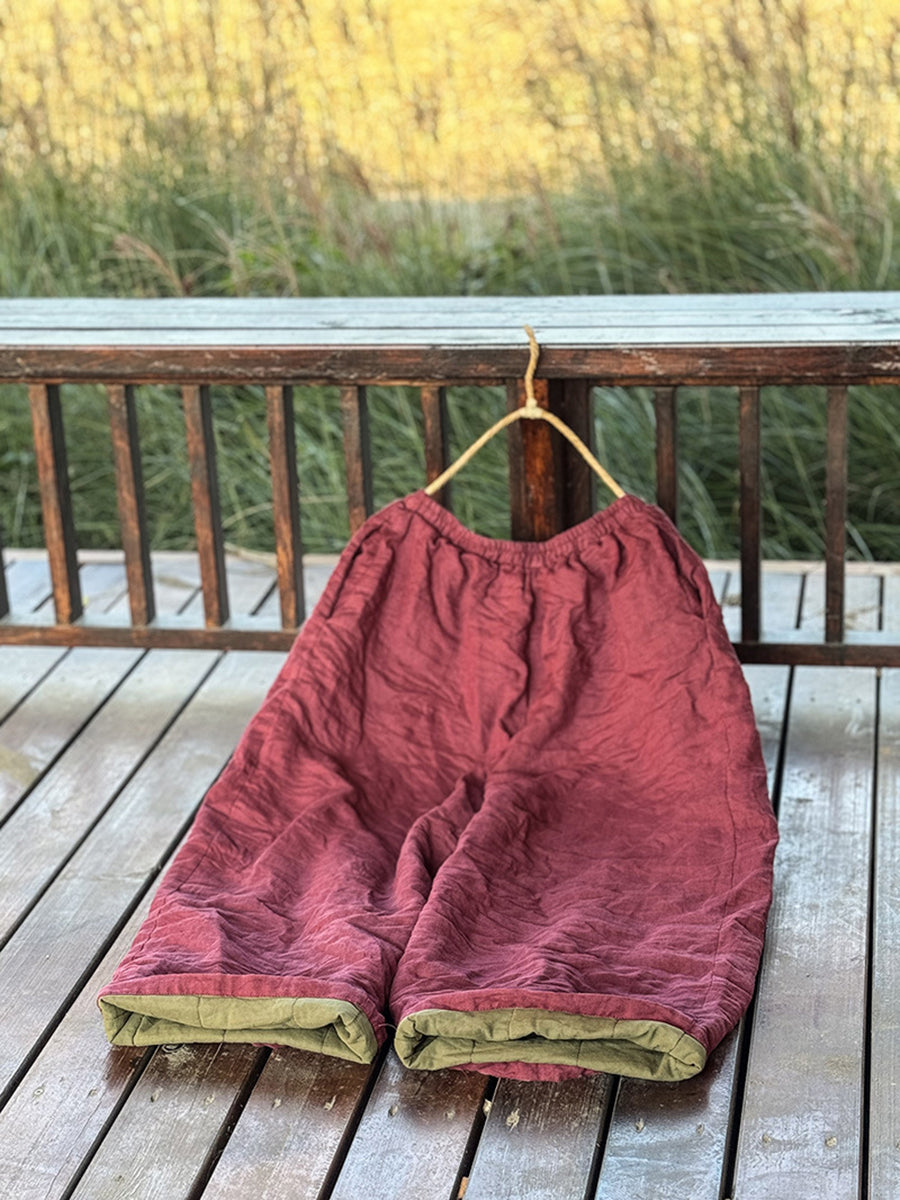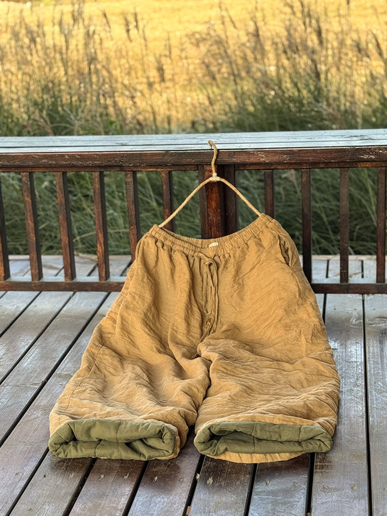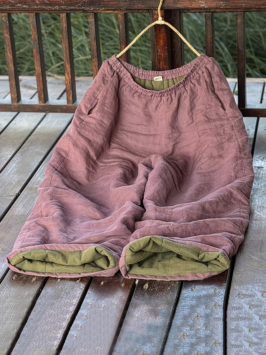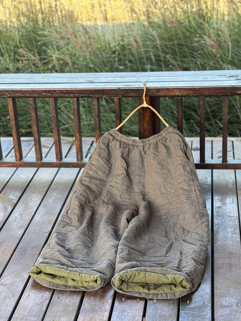 Pantalones holgados de ramio con puños de color liso estilo vintage de otoño para mujer