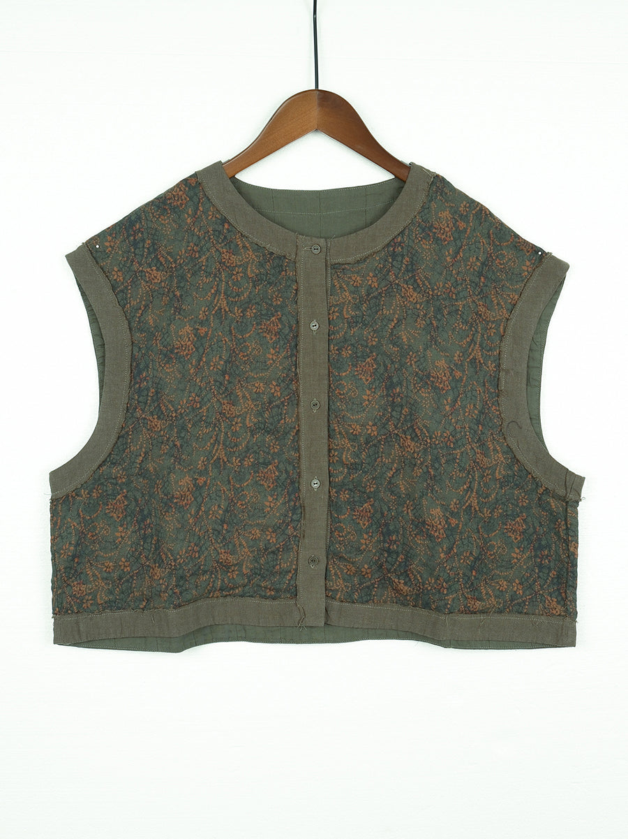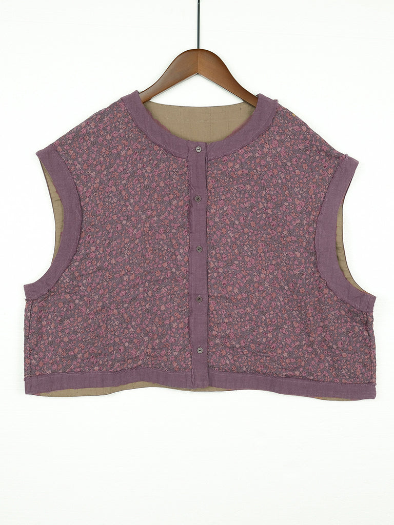 Este chaleco de estilo vintage, confeccionado en 100 % algodón, presenta un hermoso estampado floral en un cuello redondo. Perfecto para la primavera y el verano.