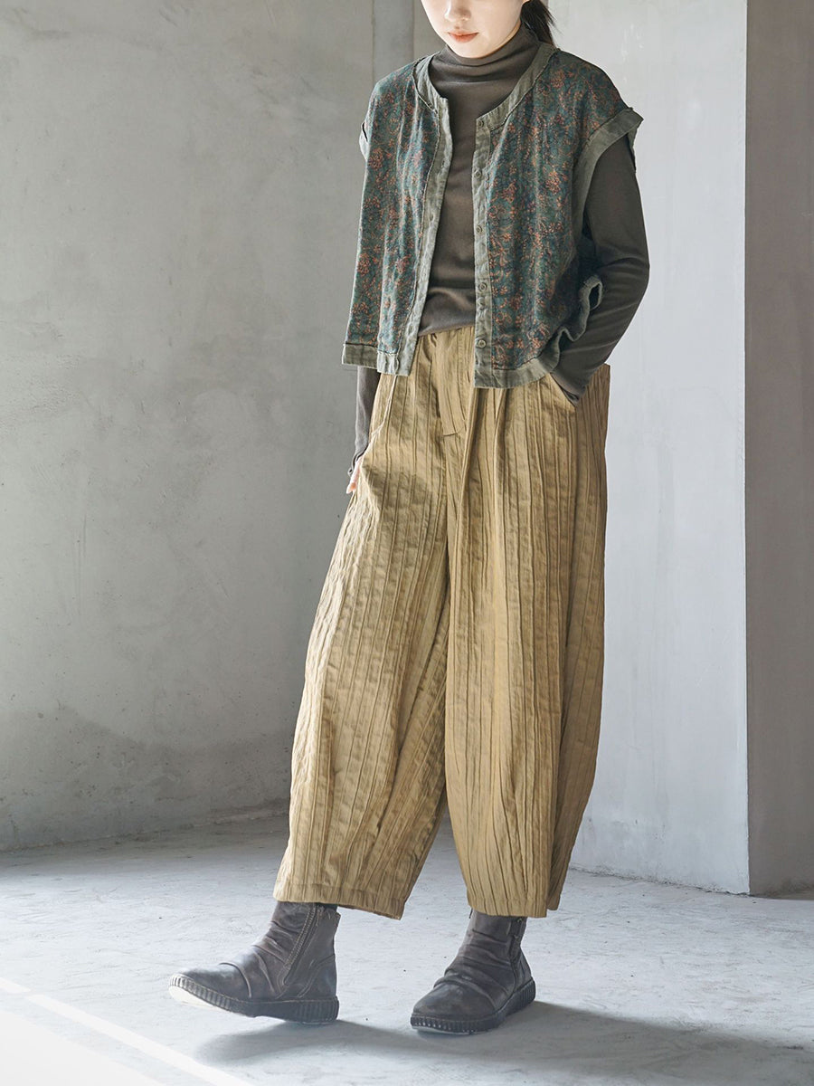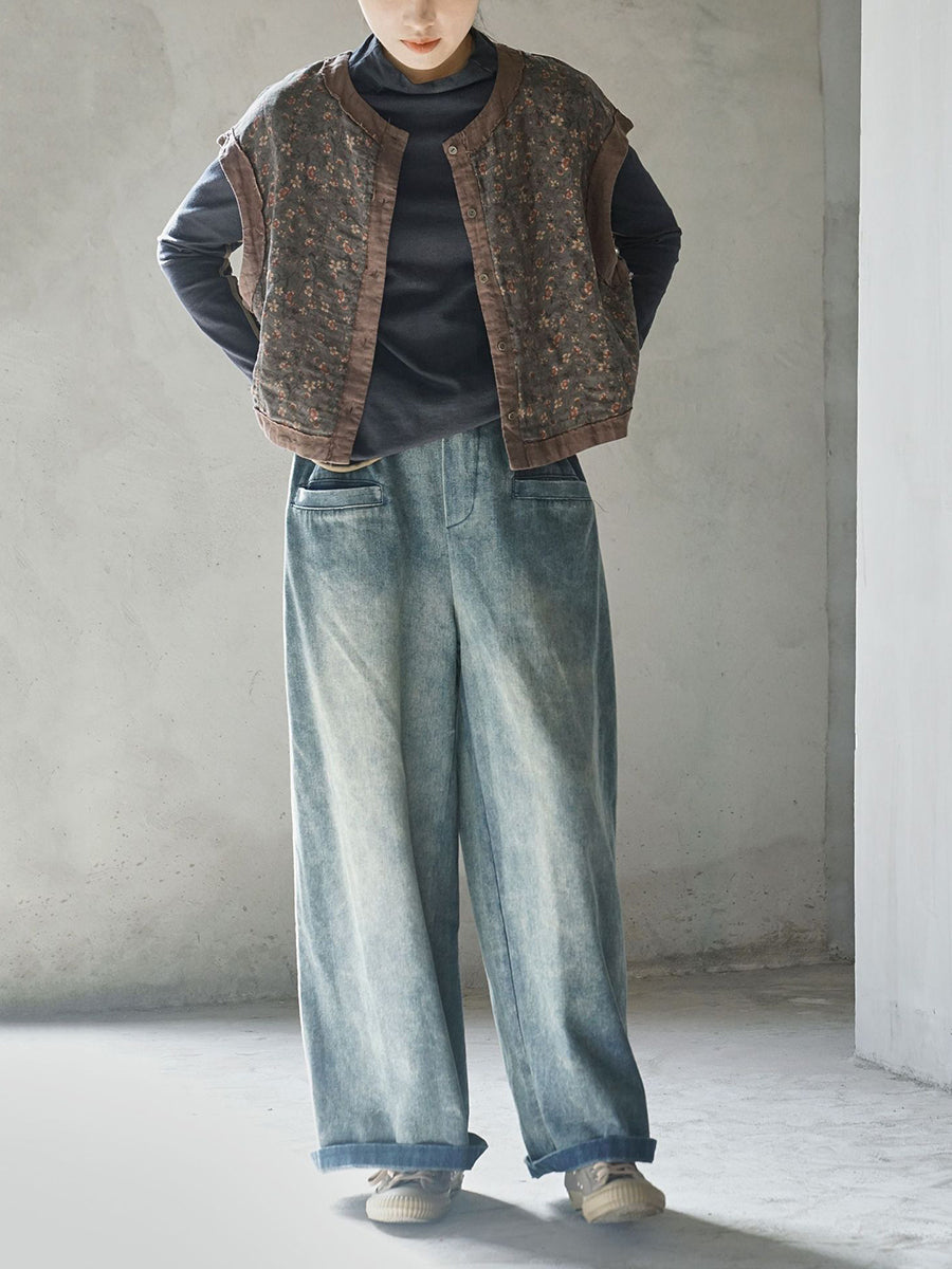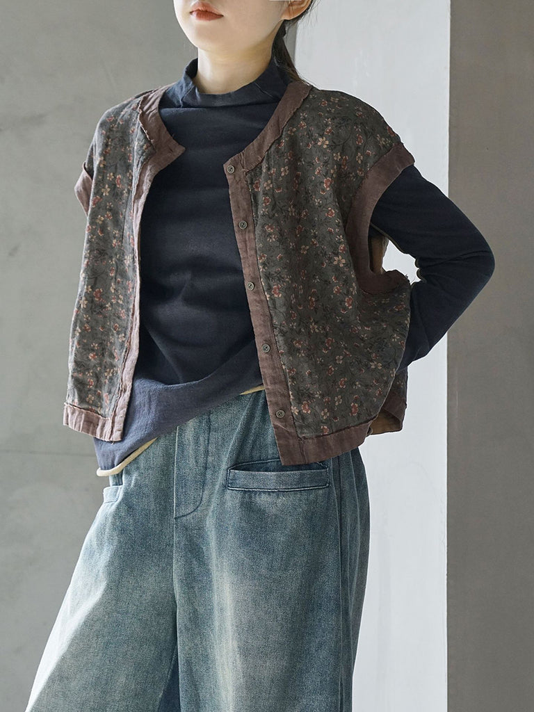 Chaleco de algodón de primavera con empalme floral vintage para mujer