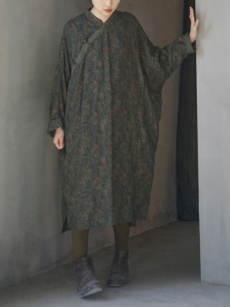 Este vestido largo tipo túnica está confeccionado en 100 % algodón y presenta cuello alto, mangas raglán y corte hasta la rodilla. La tela tiene un hermoso estampado floral y el dobladillo está dividido para darle más estilo. Perfecto para las estaciones de primavera y otoño.