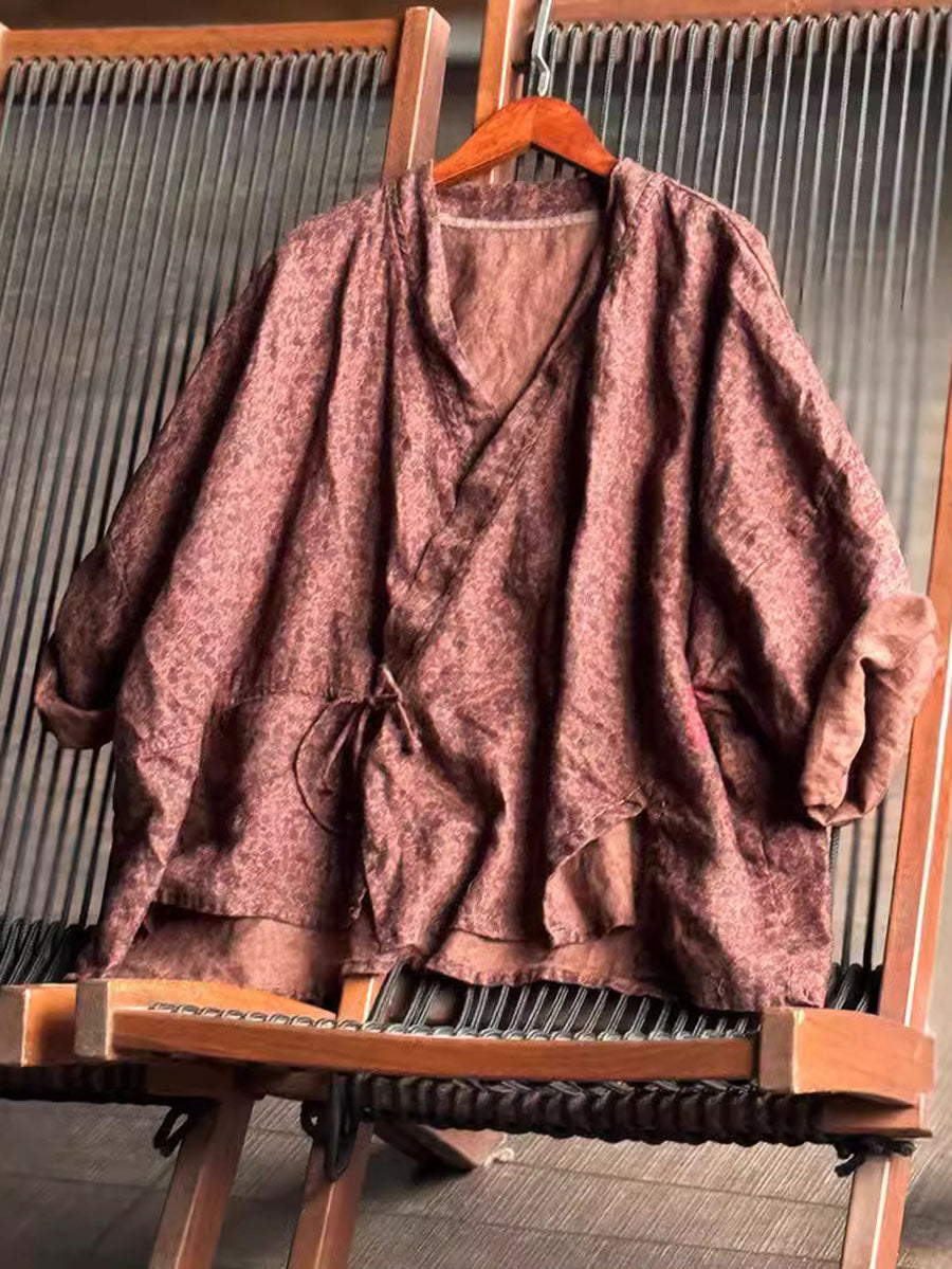 Camisa de lino lisa de estilo vintage para mujer, otoño