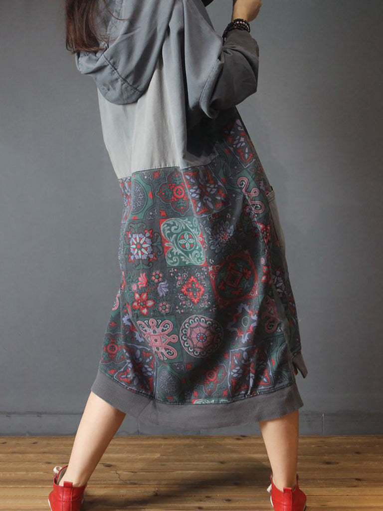 Vestido holgado con capucha y estampado floral estilo vintage para mujer