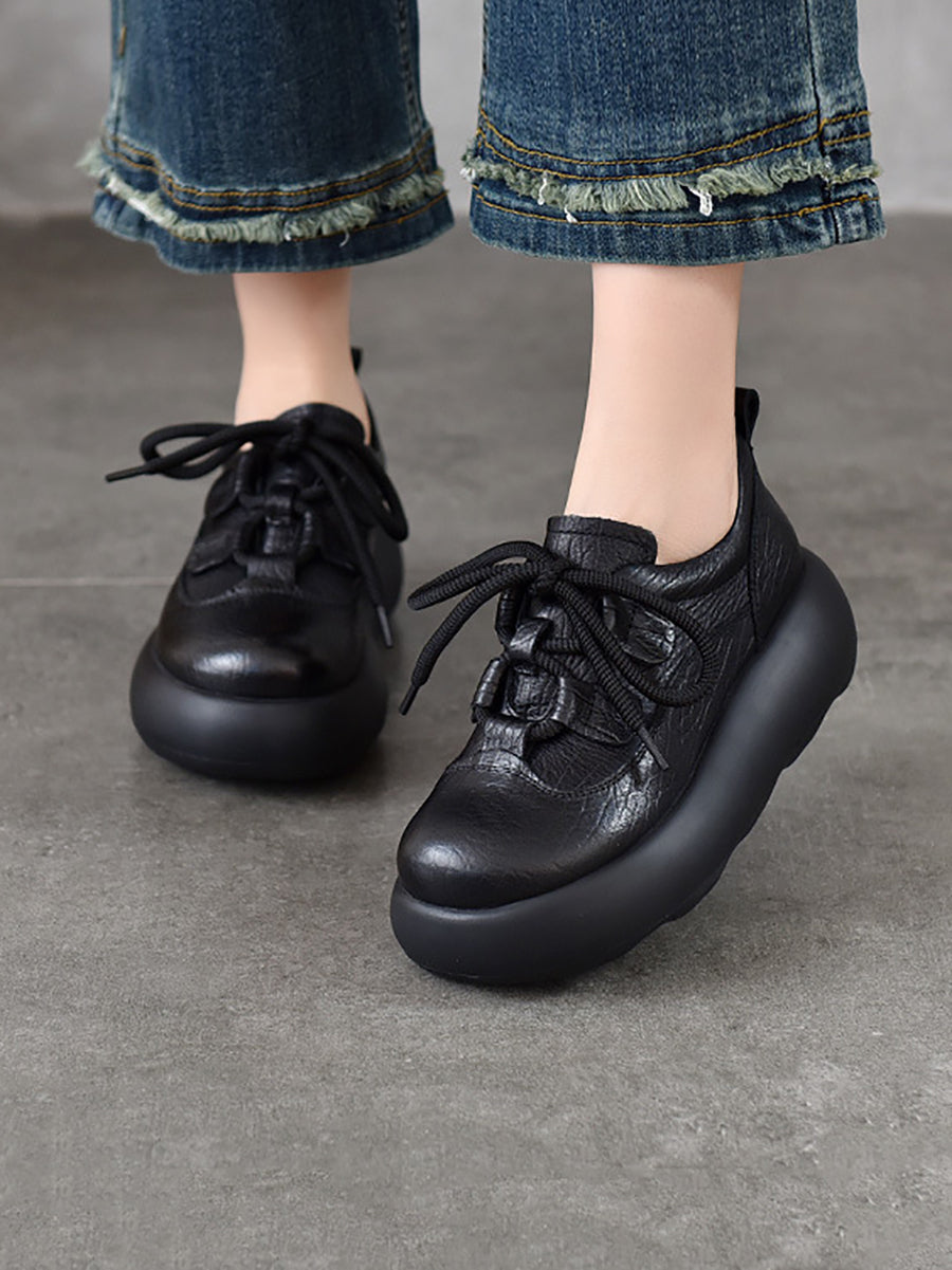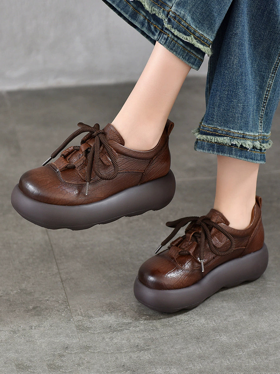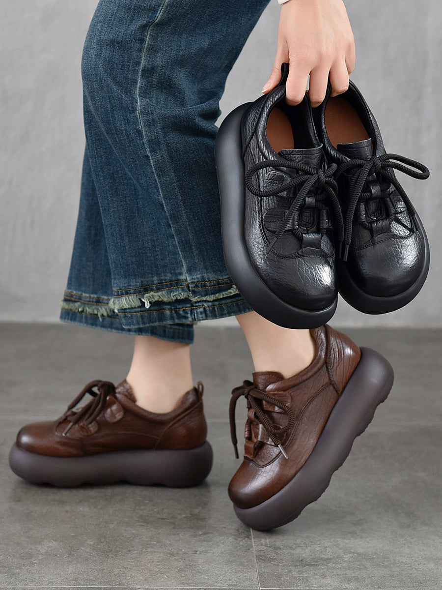 Zapatos de plataforma vintage de piel auténtica para mujer