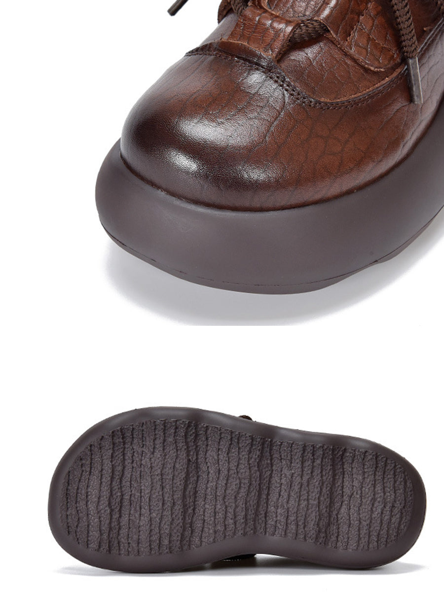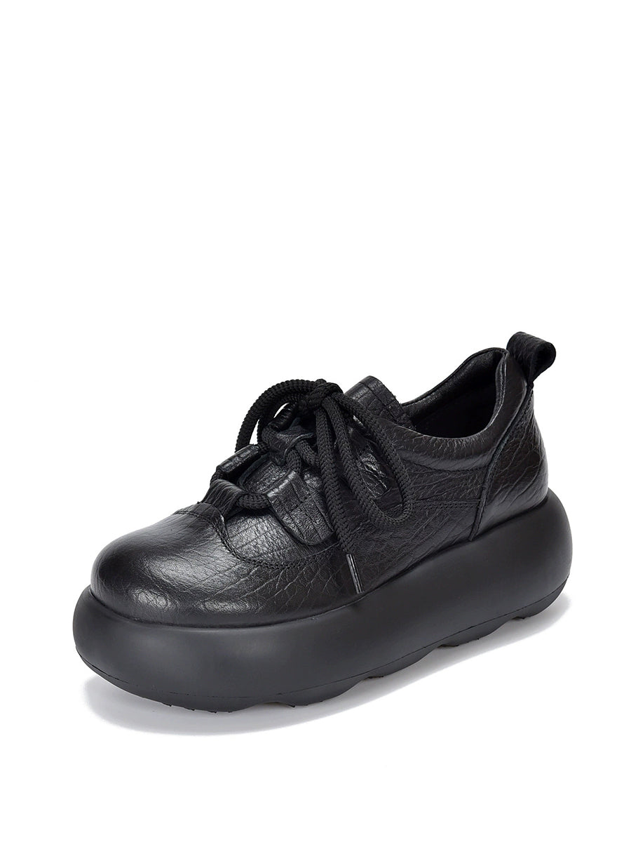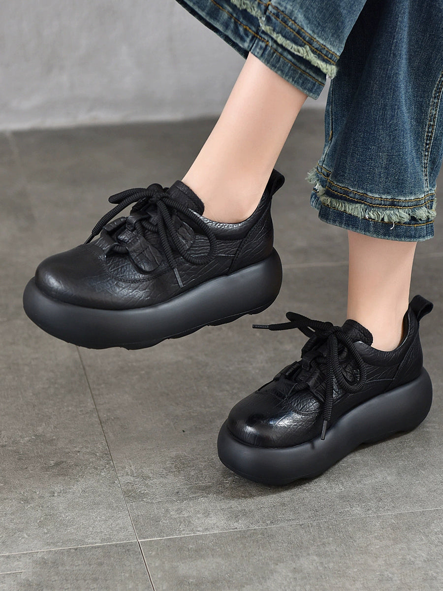Zapatos de plataforma vintage de piel auténtica para mujer