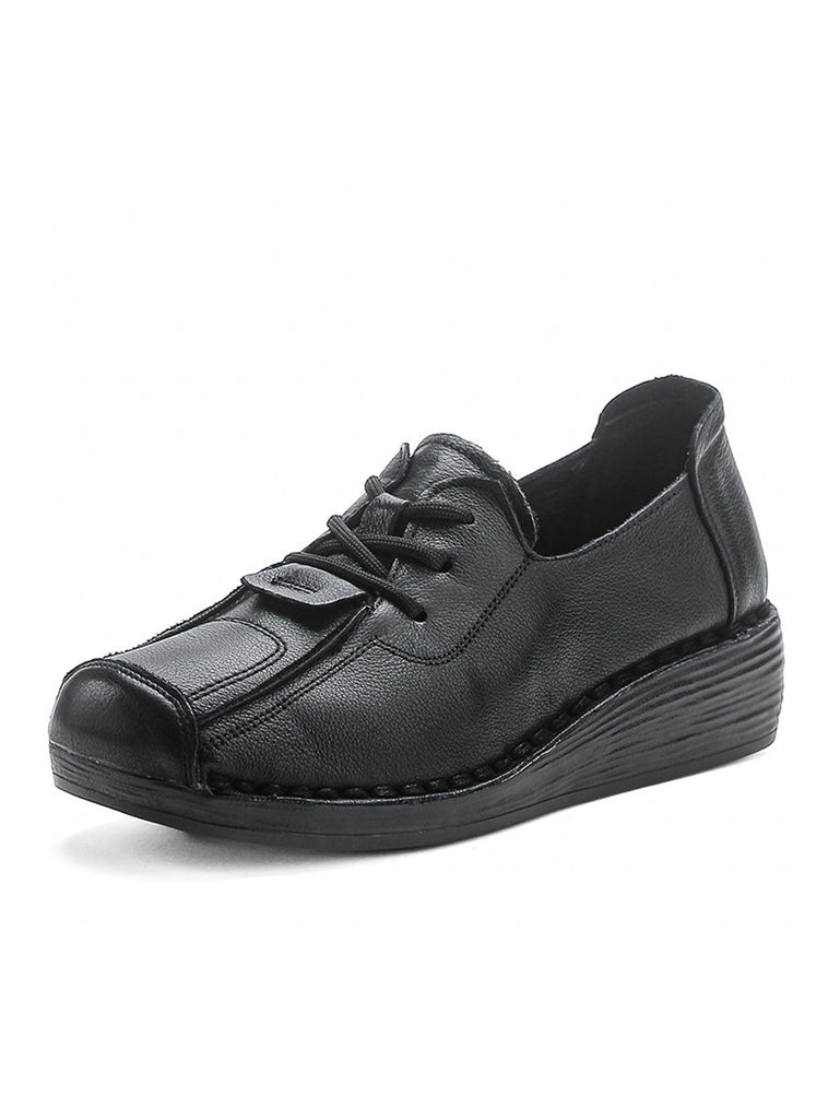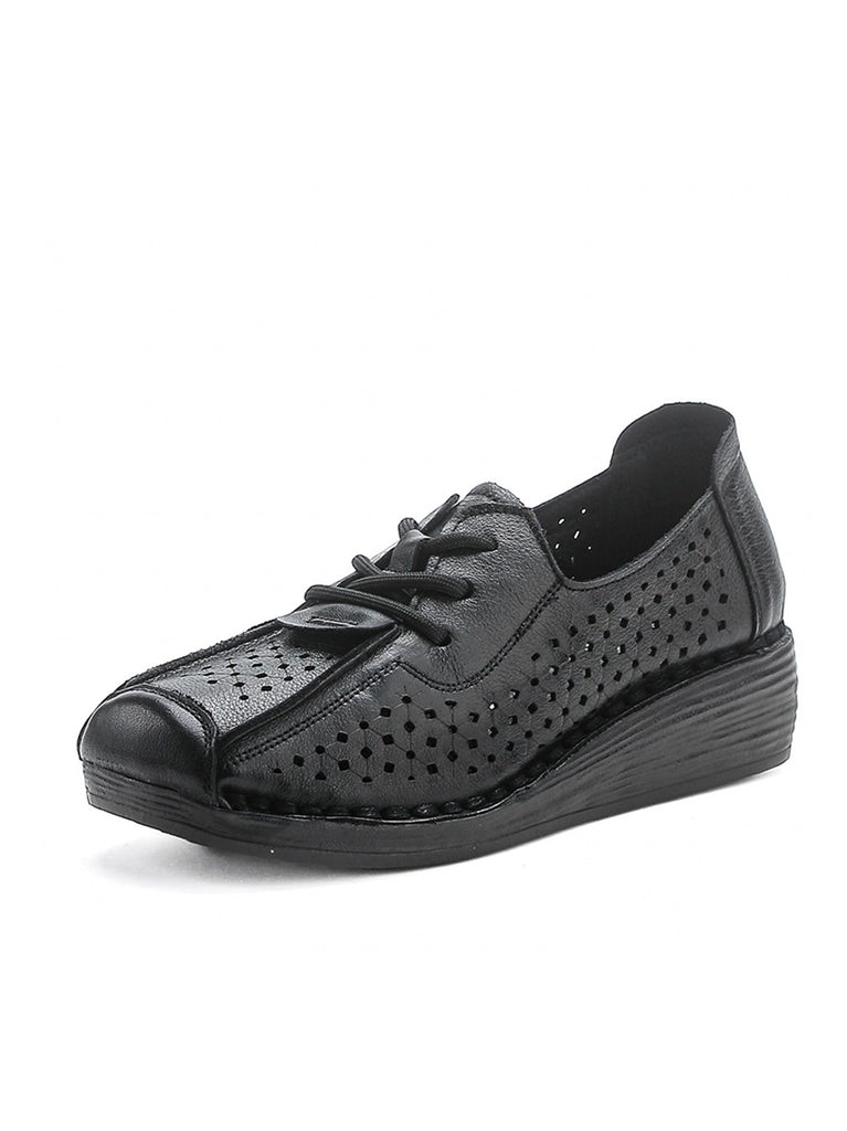 Zapatos de plataforma calados de cuero genuino vintage para mujer