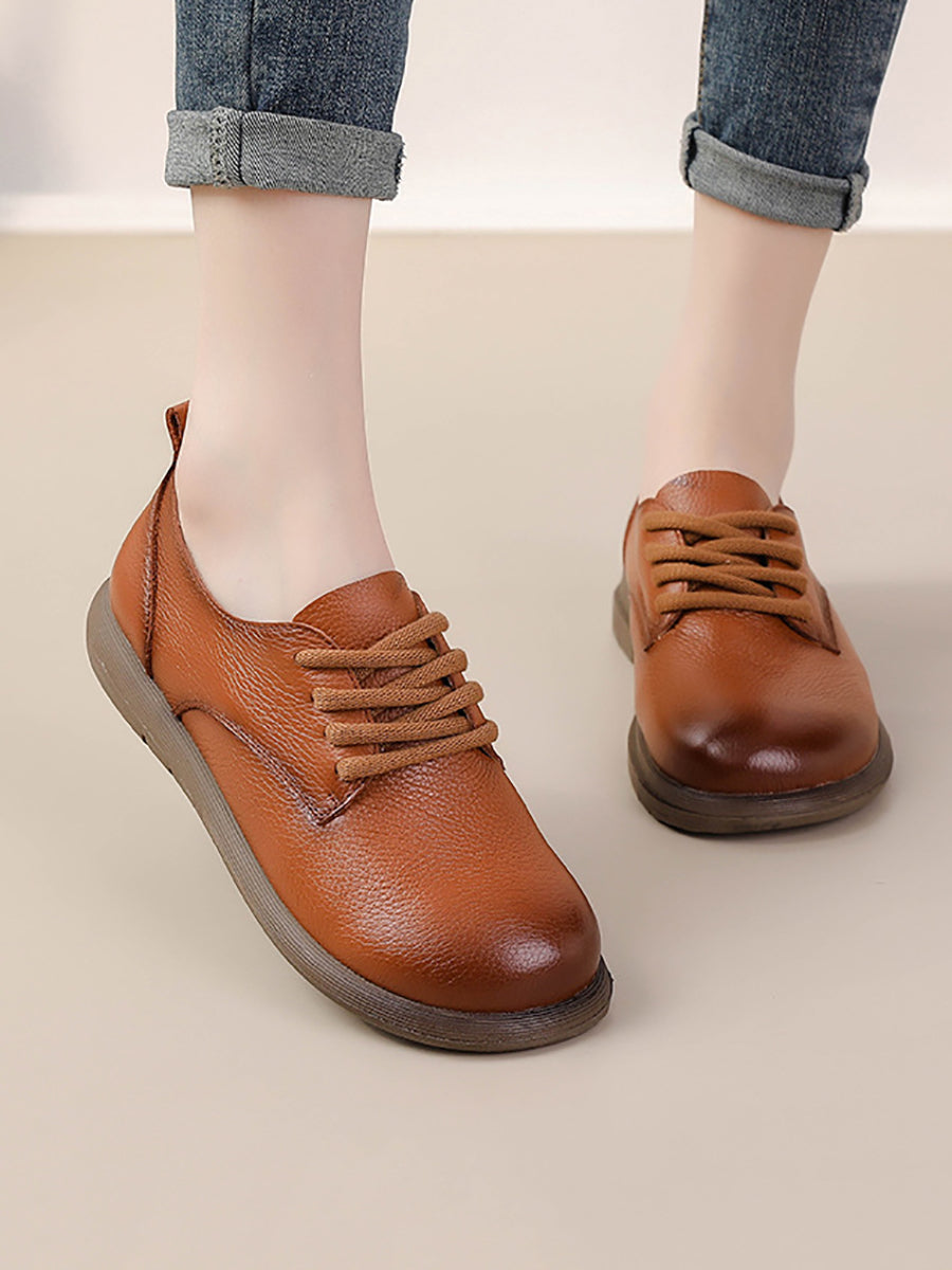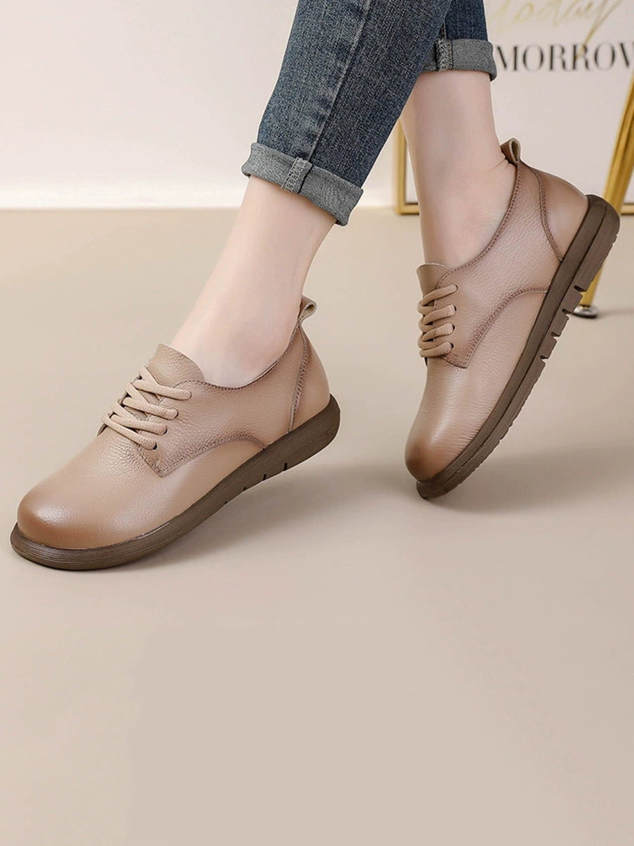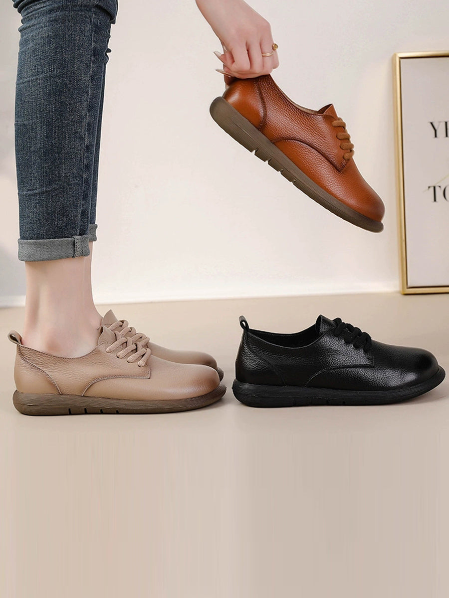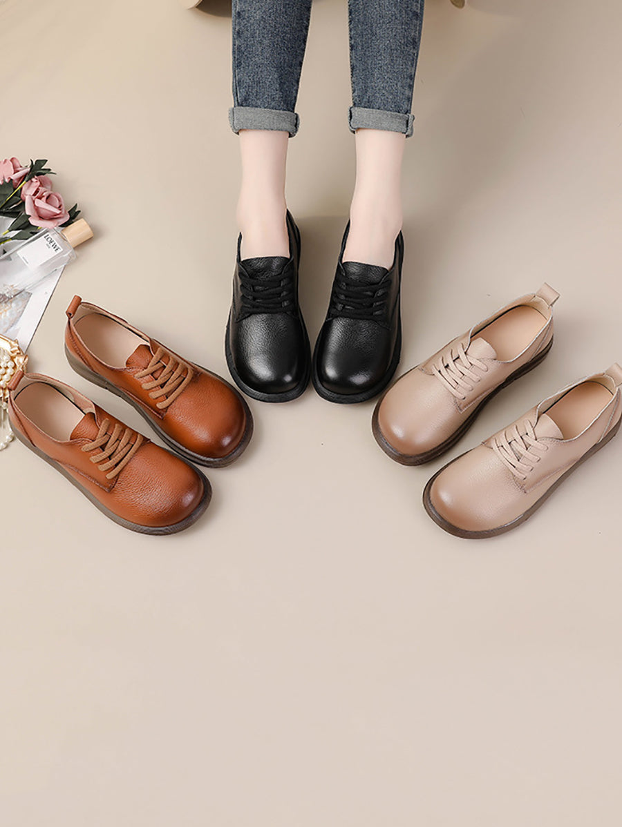 Zapatos planos vintage de piel auténtica con empalmes para mujer