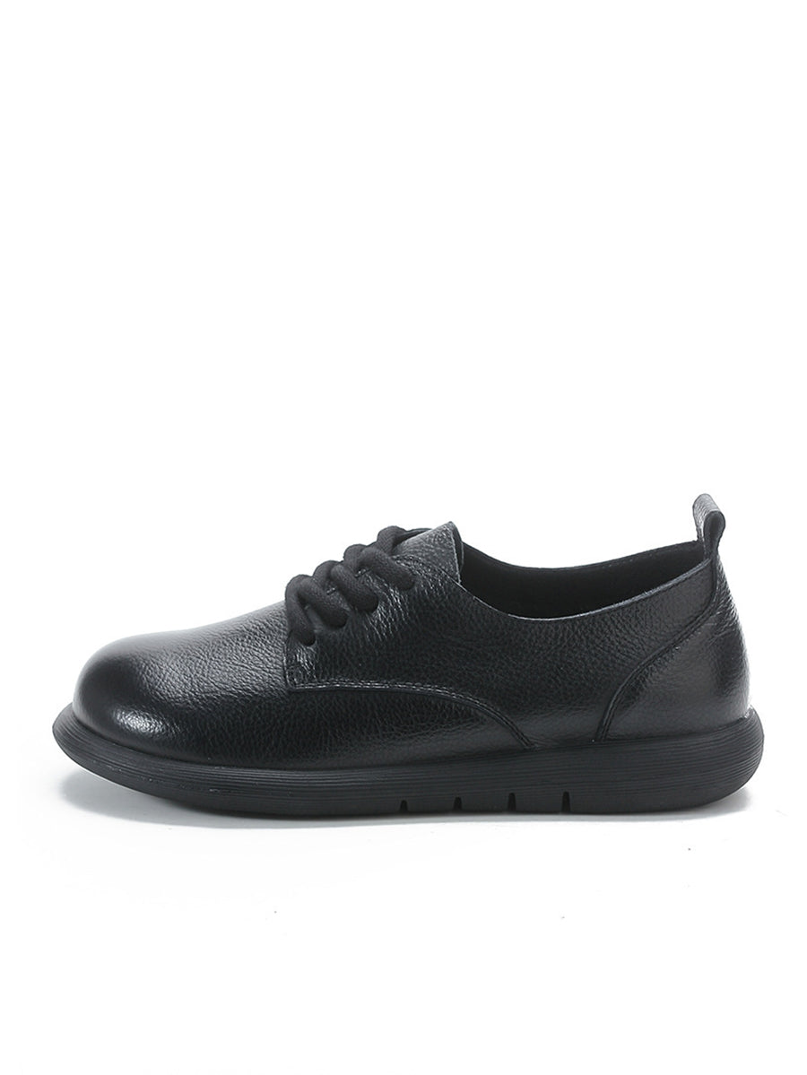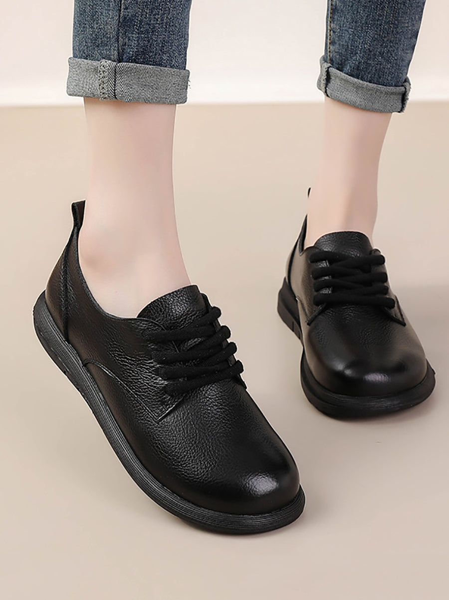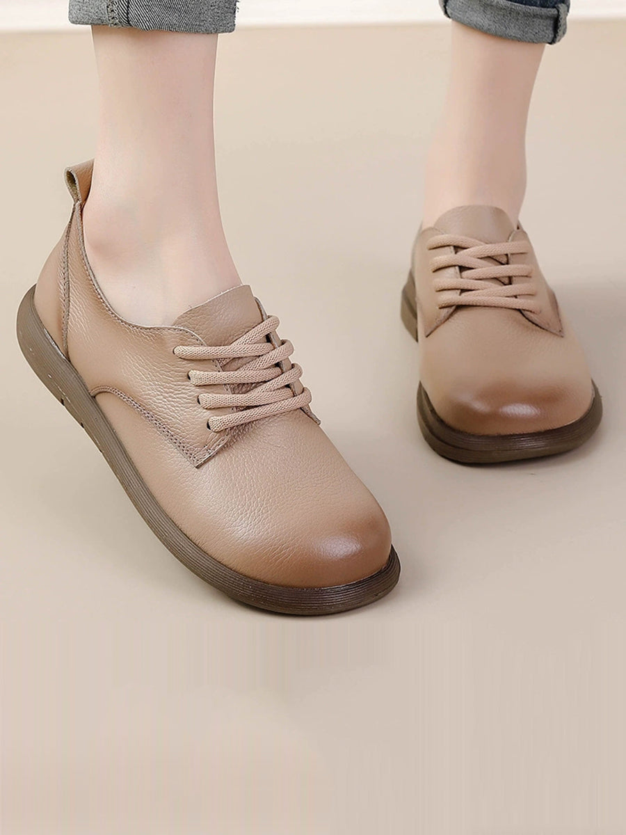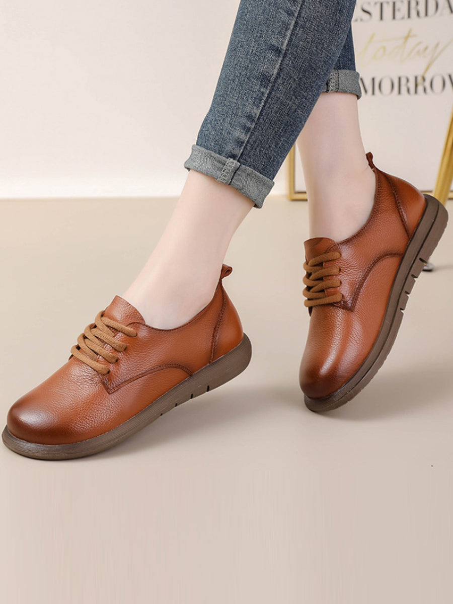 Zapatos planos vintage de piel auténtica con empalmes para mujer