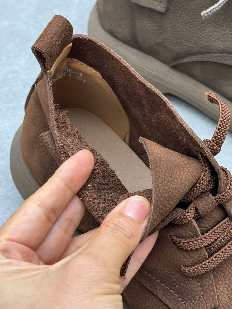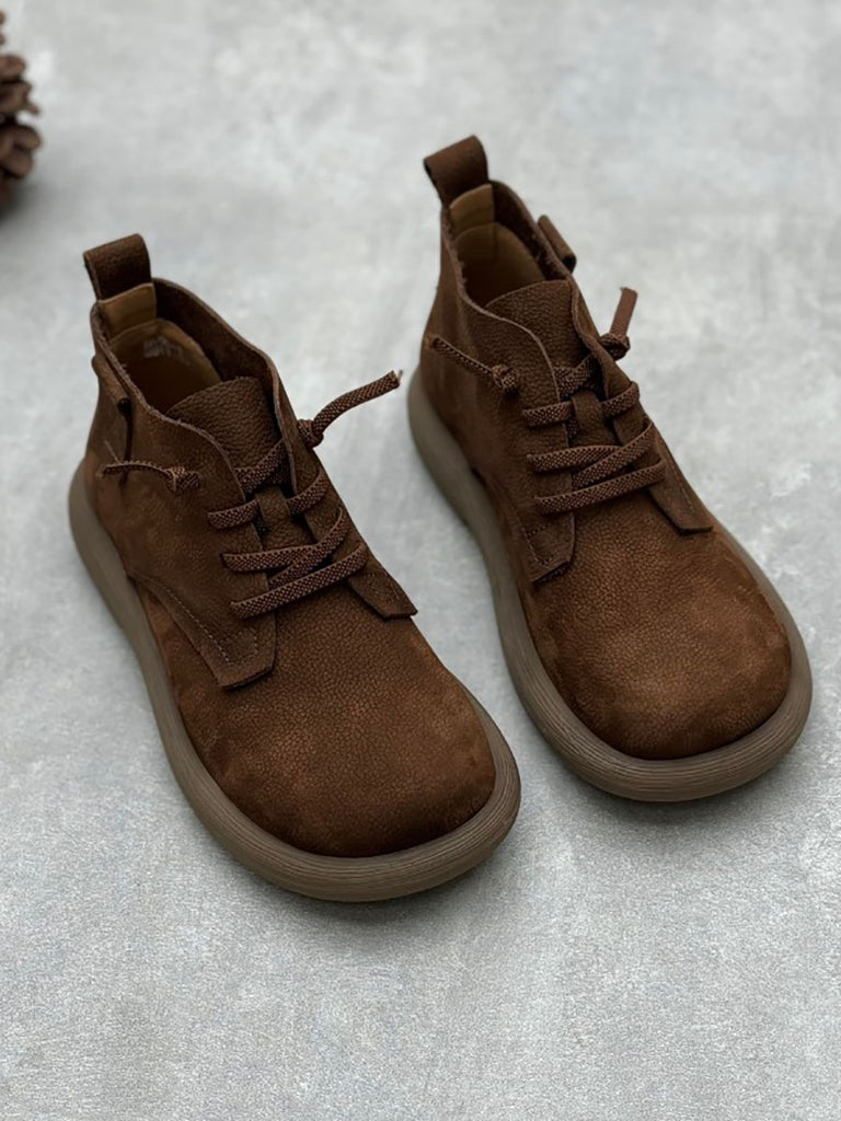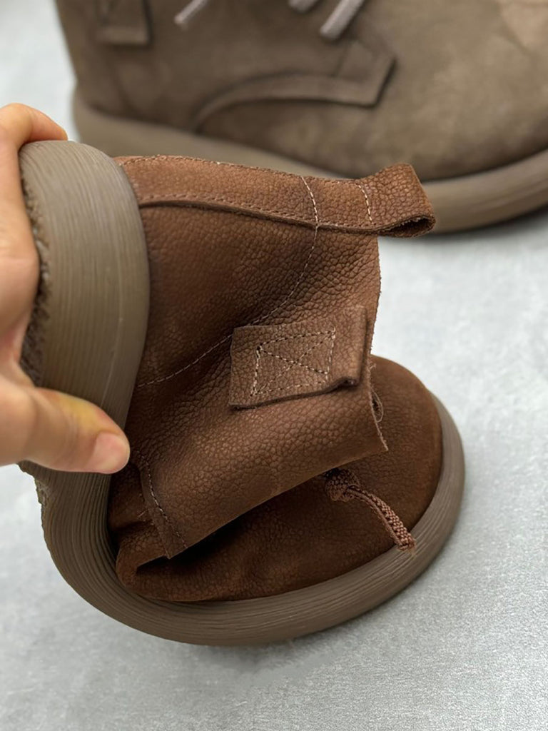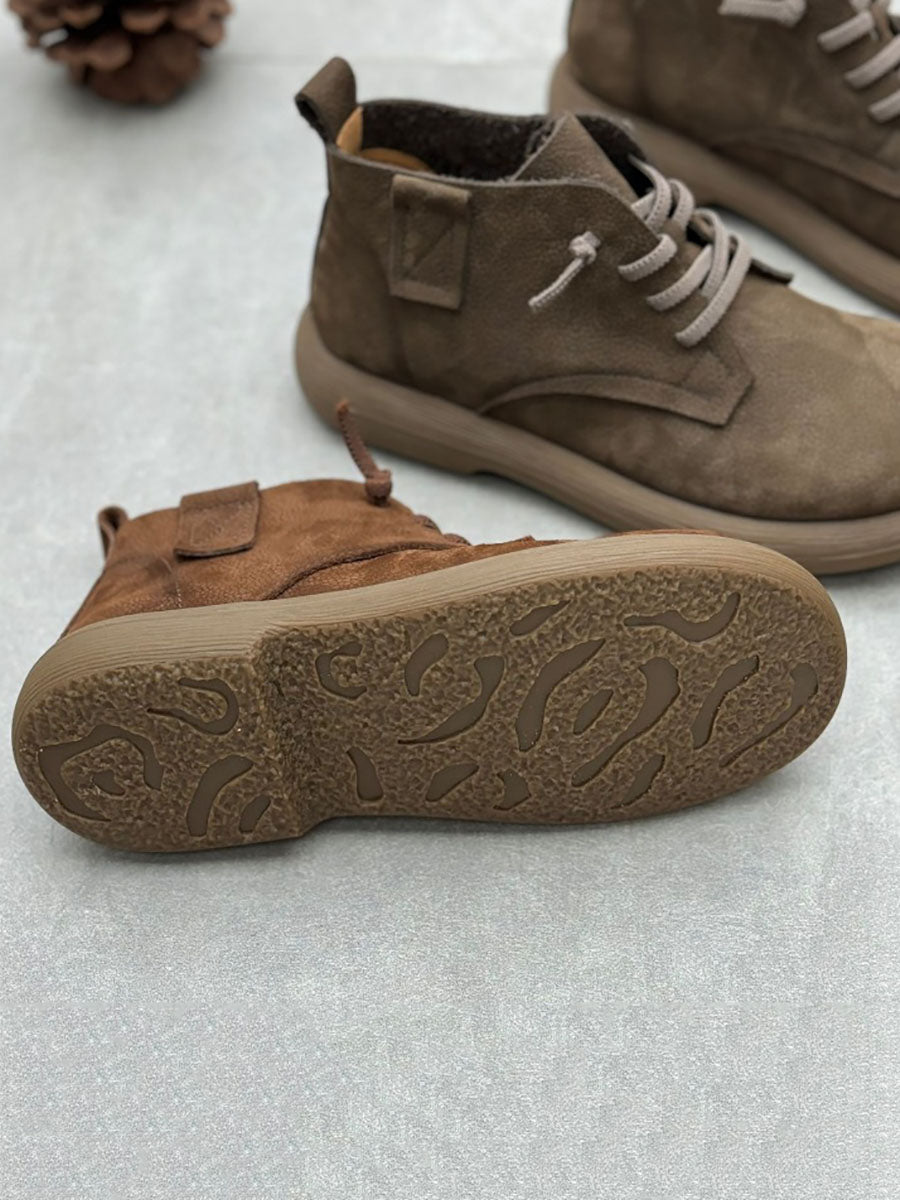 Botas de tacón bajo con tiras de piel auténtica estilo vintage para mujer