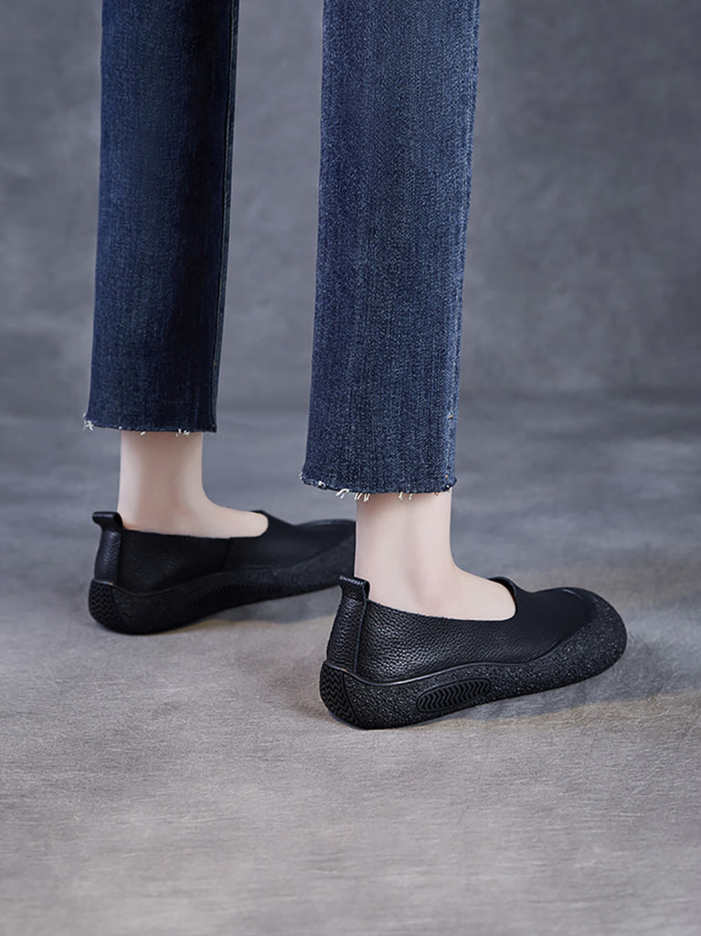Zapatos planos vintage de piel suave para mujer