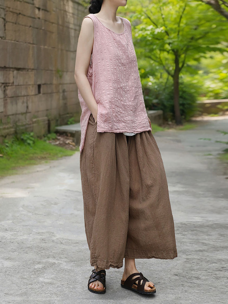 Los pantalones rectos de algodón lisos y vintage para mujer están confeccionados con 100 % algodón y presentan un estilo vintage. Los pantalones tienen cintura elástica y llegan hasta los tobillos, lo que los hace perfectos para la primavera y el verano.